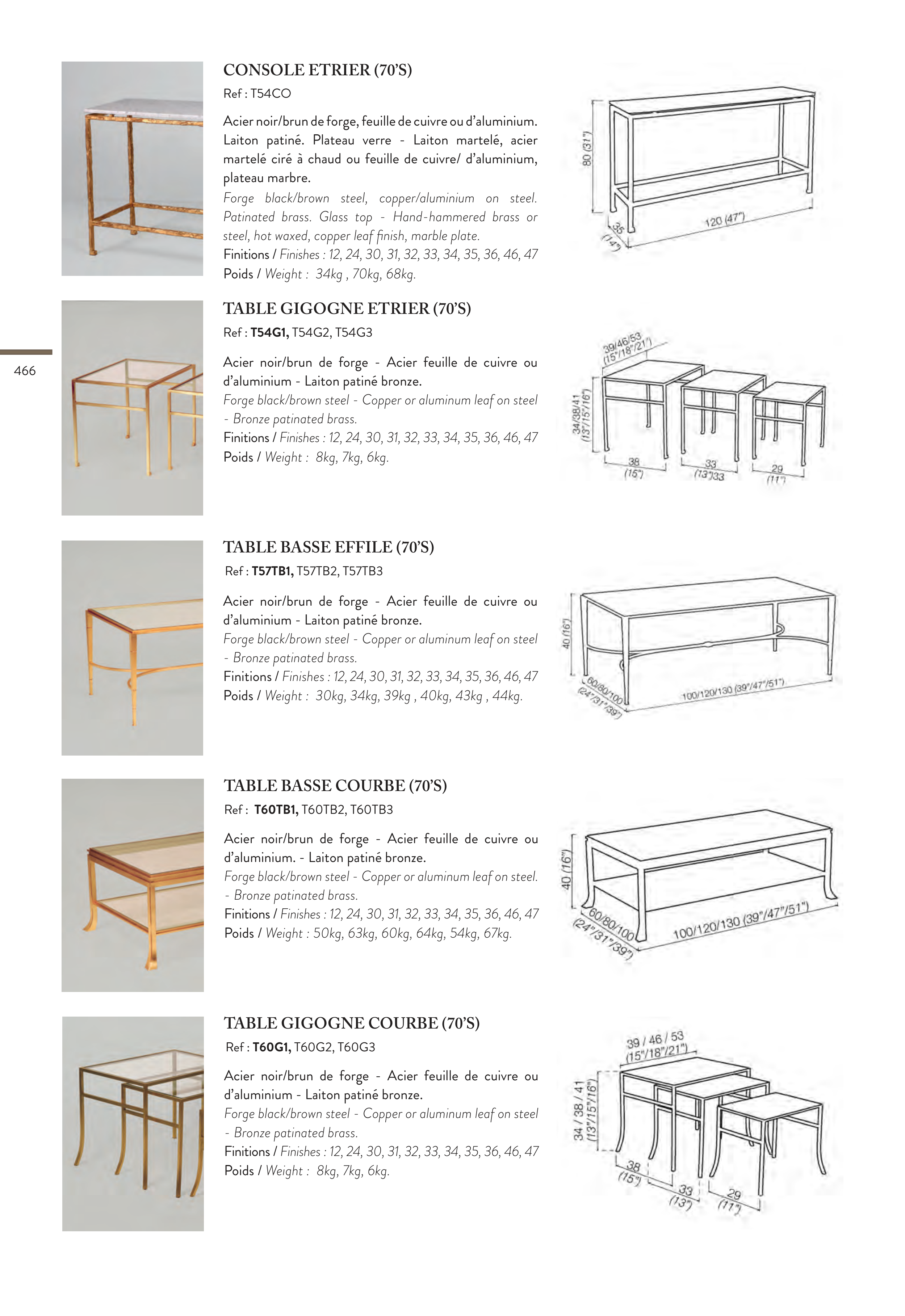 Finitions / Finishes : 12, 24, 30, 31, 32, 33, 34, 35, 36, 46, 47