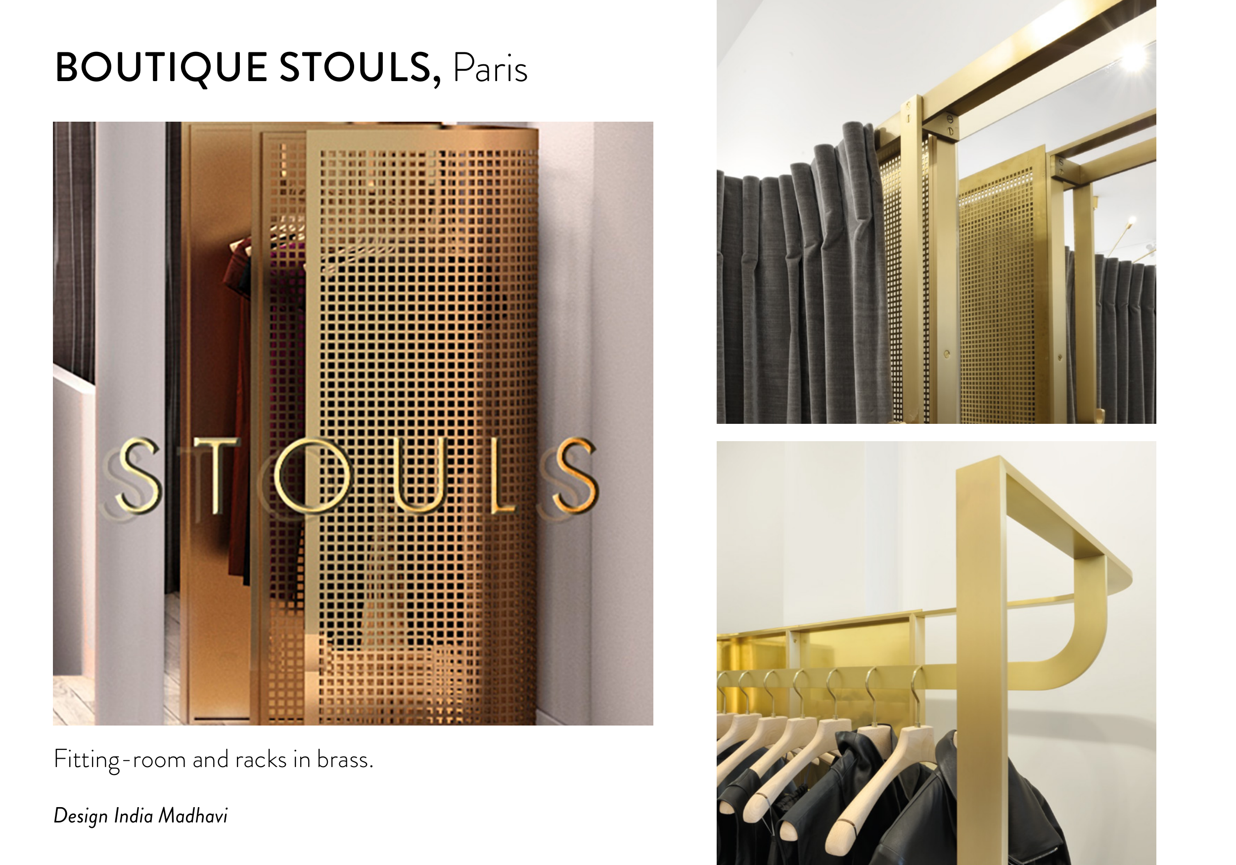 Fitting-room and racks in brass.