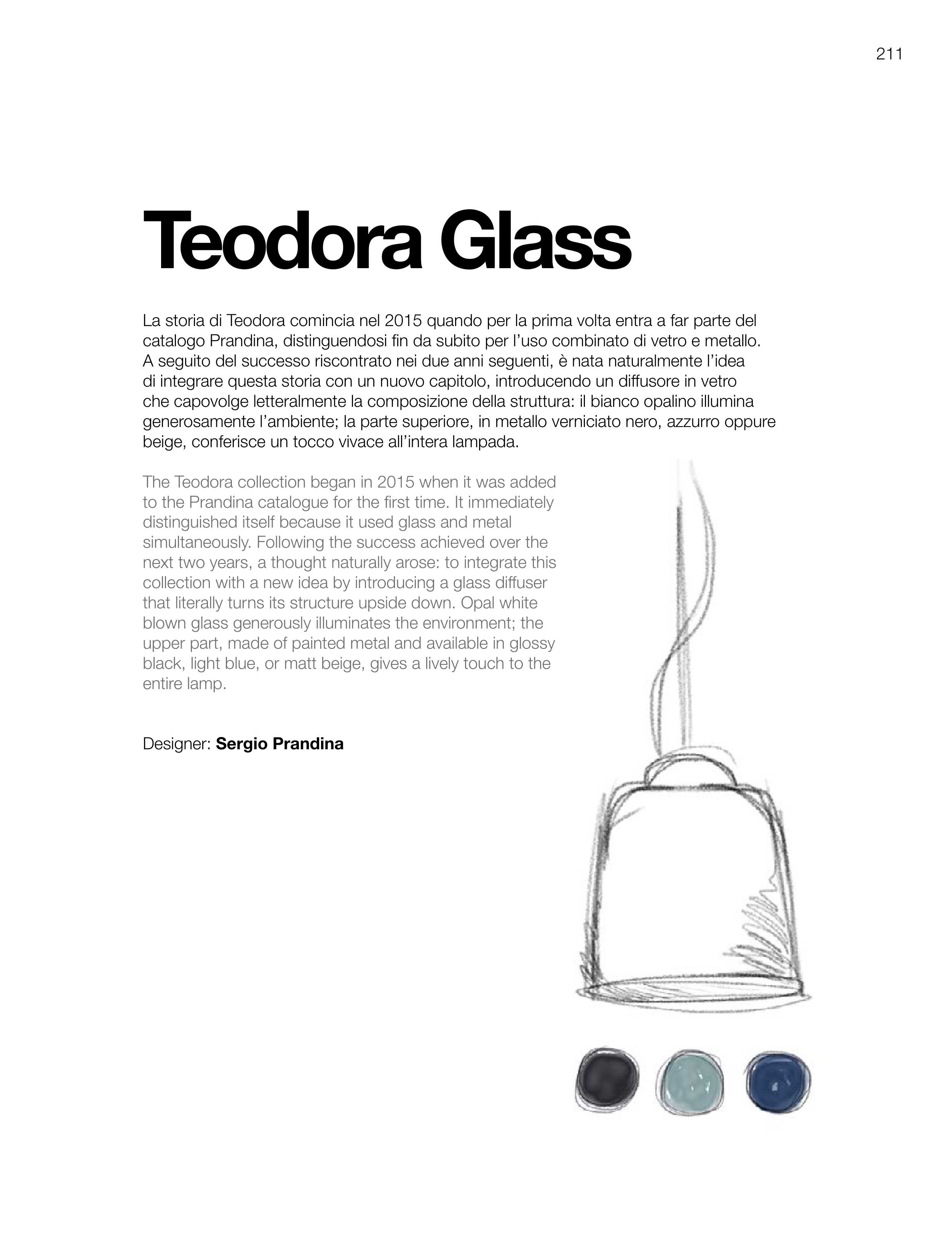catalogo Prandina, distinguendosi fin da subito per l’uso combinato di vetro e metallo.