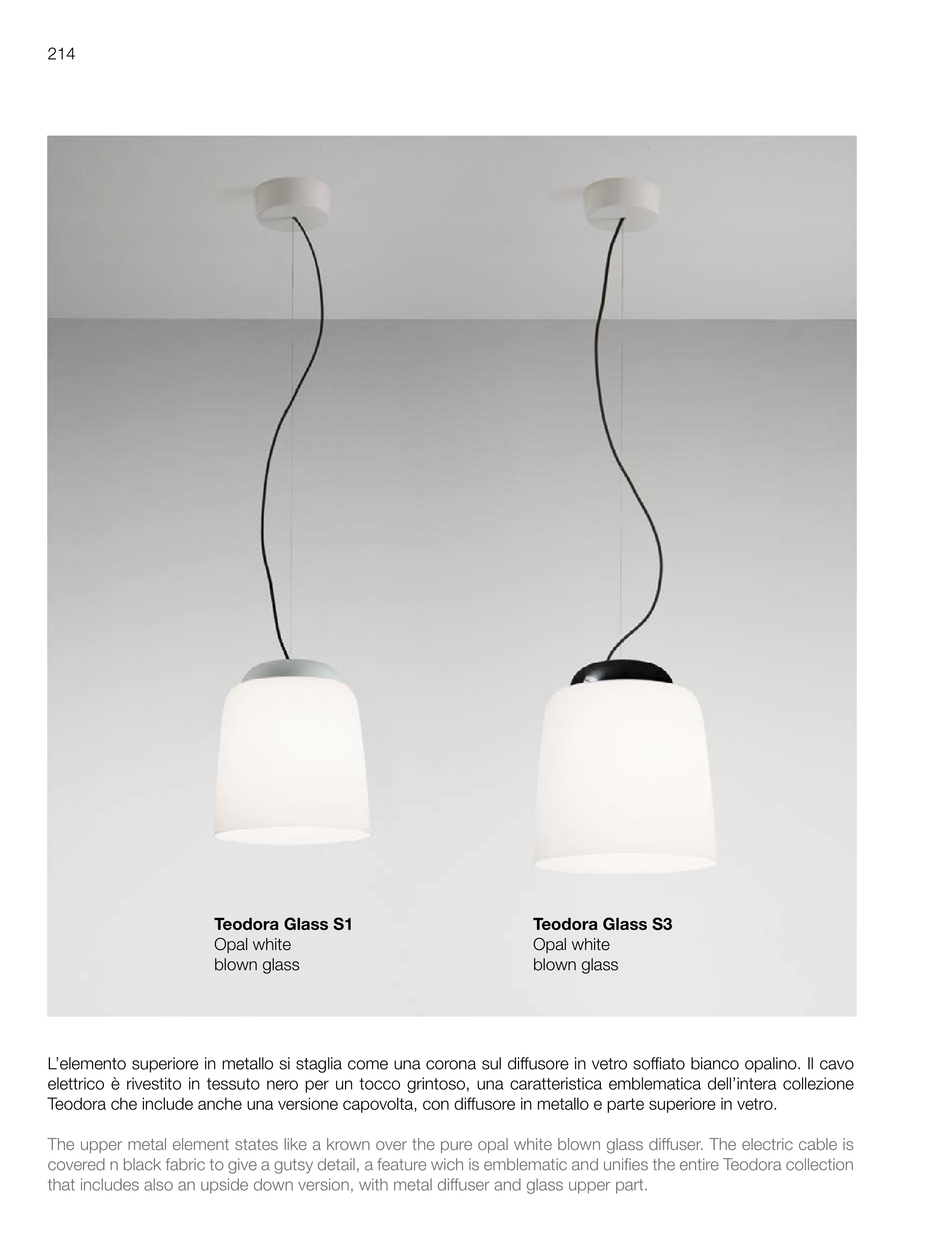 Teodora che include anche una versione capovolta, con diffusore in metallo e parte superiore in vetro.