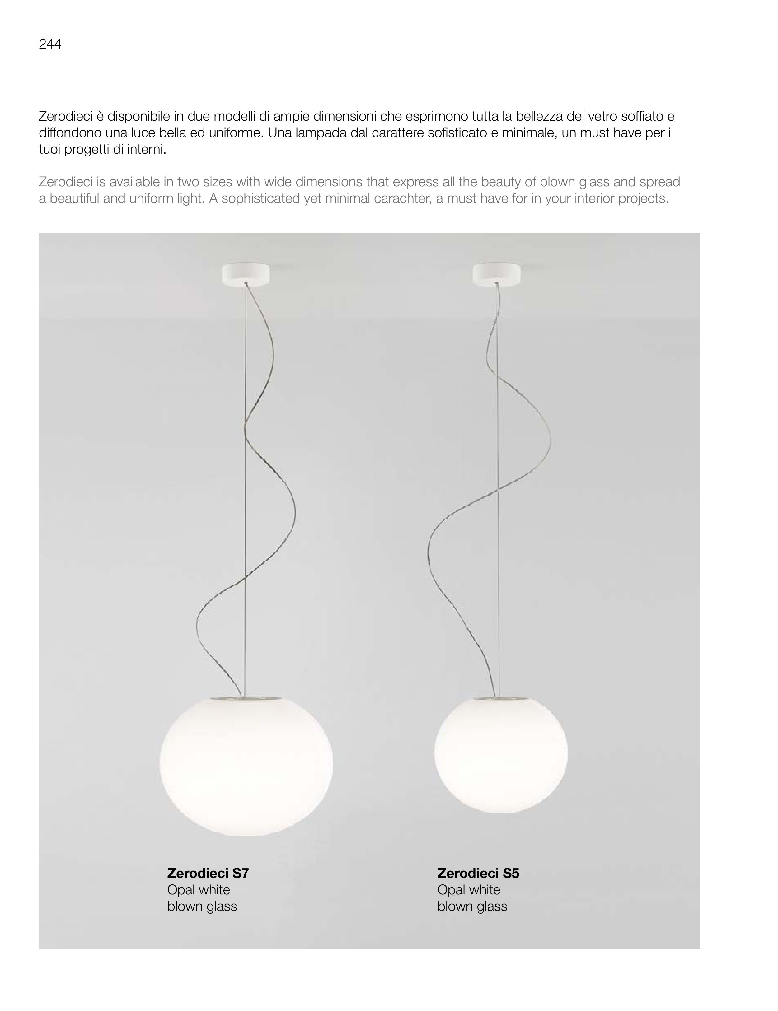 Zerodieci is available in two sizes with wide dimensions that express all the beauty of blown glass and spread