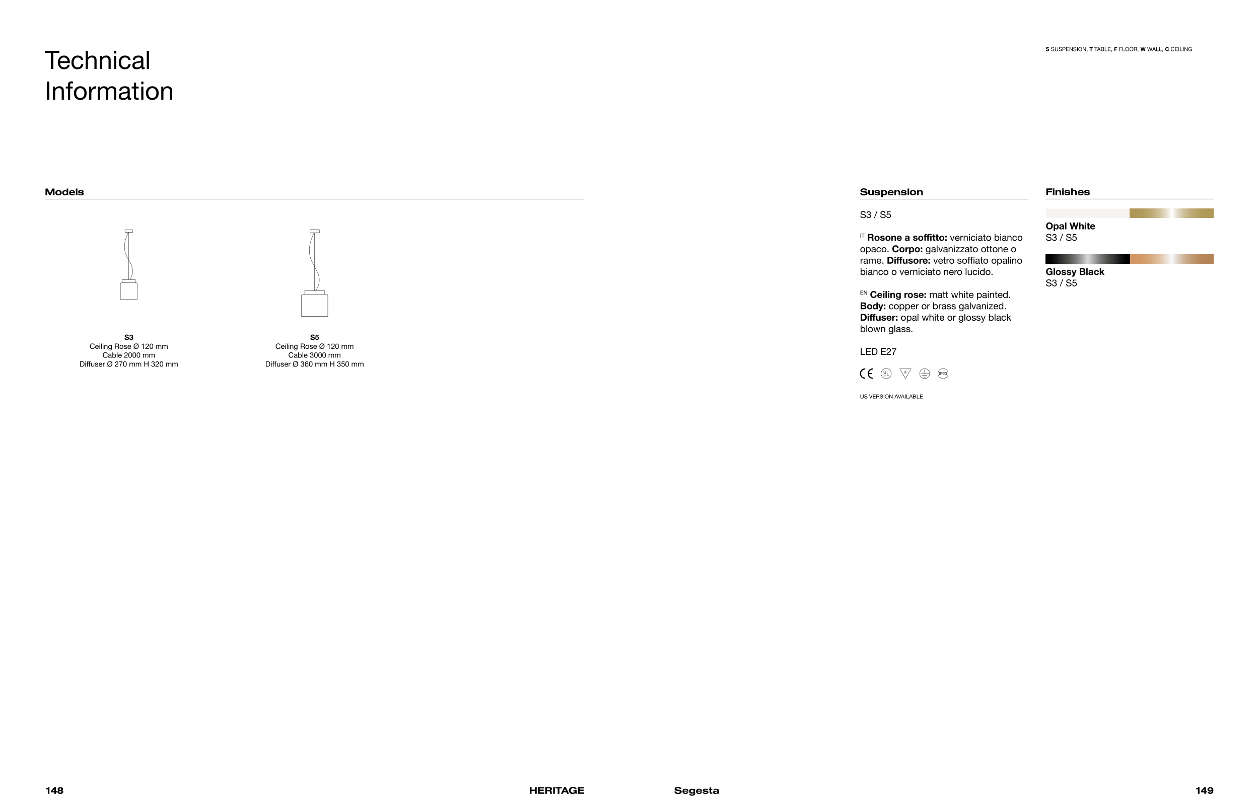 S SUSPENSION, T TABLE, F FLOOR, W WALL, C CEILING