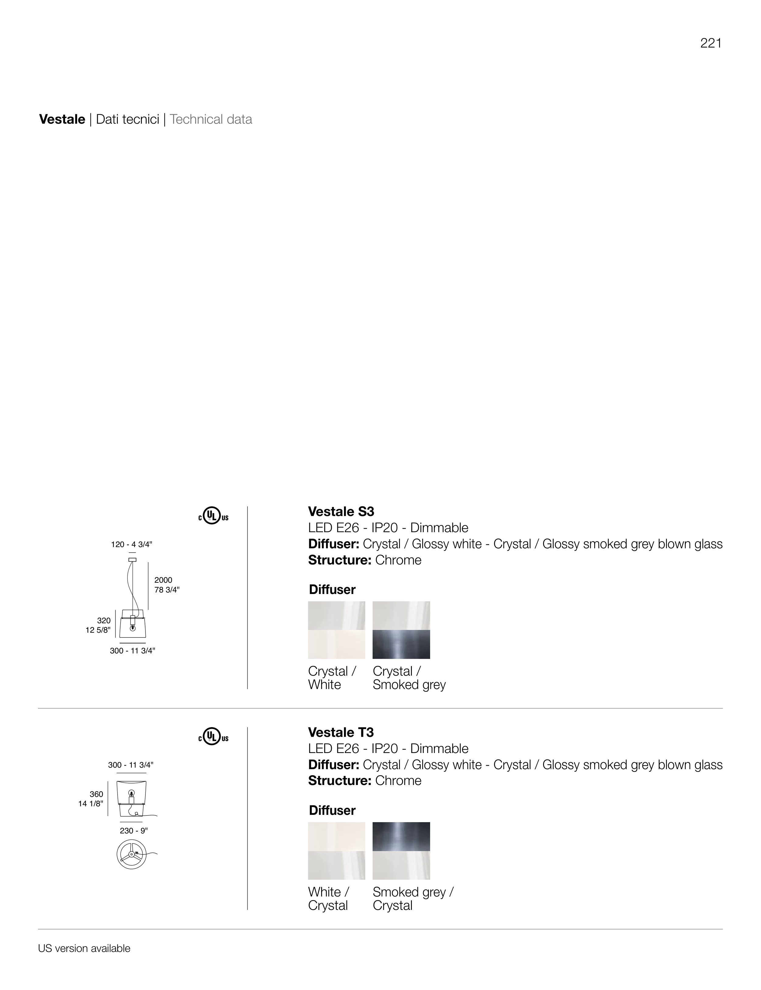 Diffuser: Crystal / Glossy white - Crystal / Glossy smoked grey blown glass