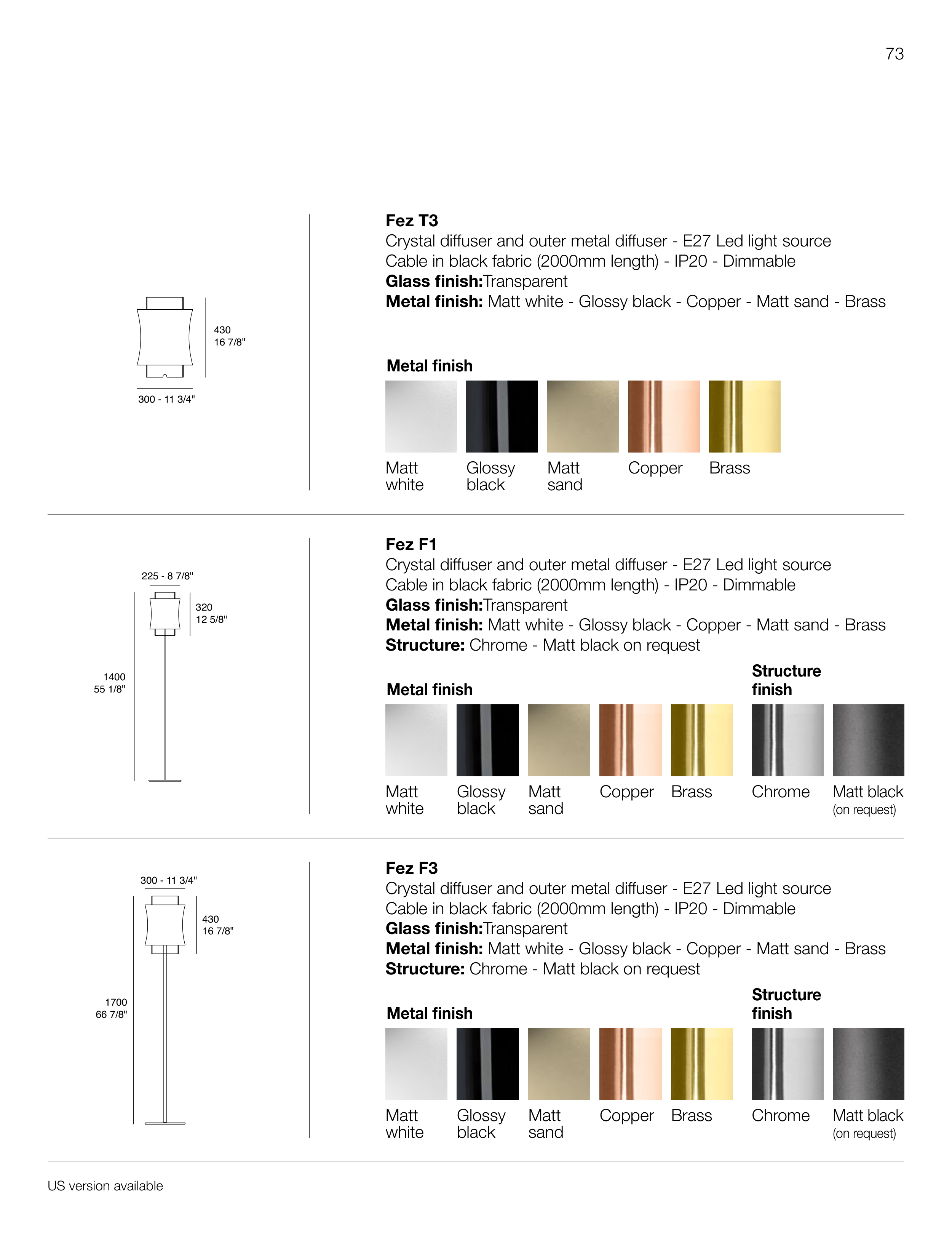 Metal finish: Matt white - Glossy black - Copper - Matt sand - Brass
