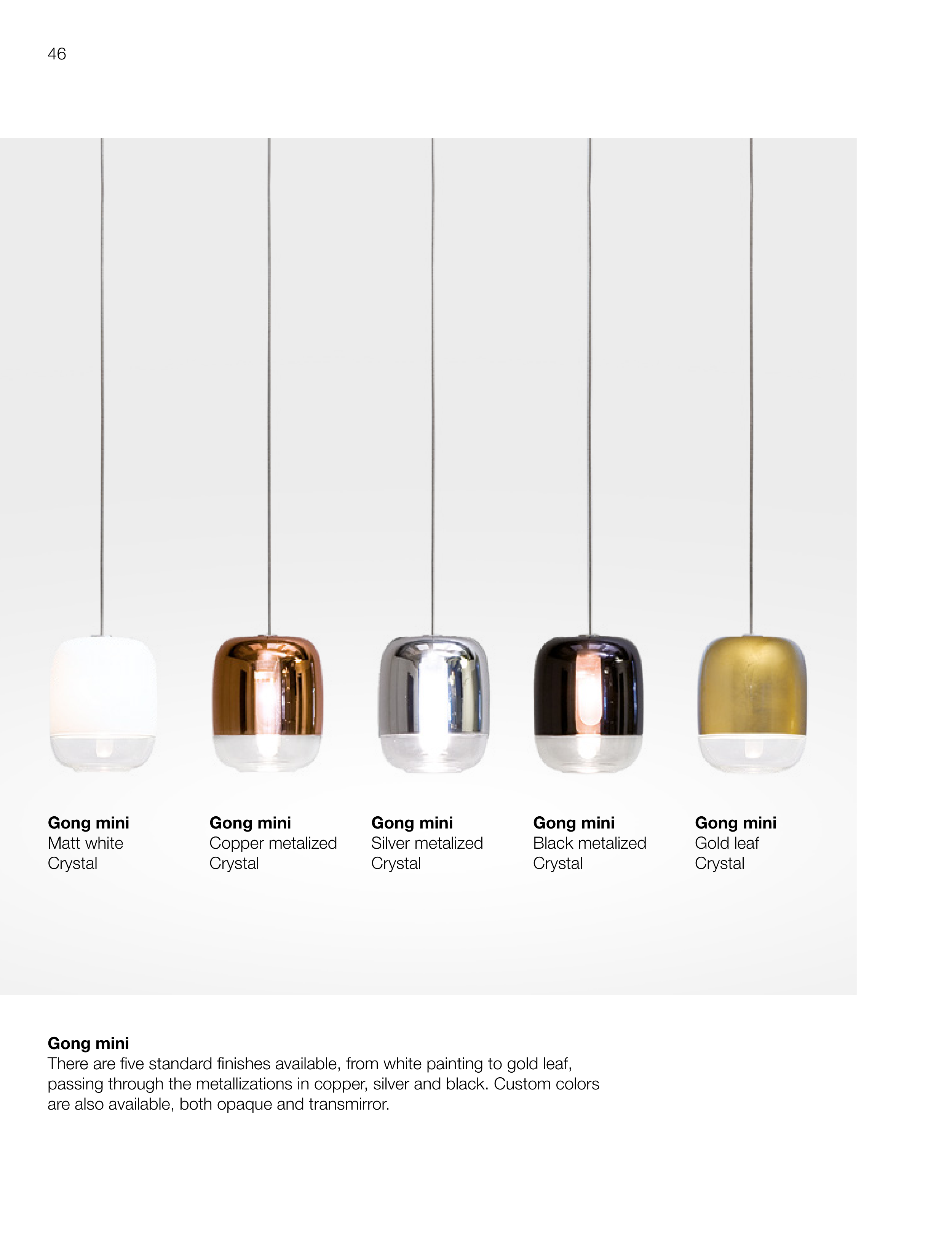 There are five standard finishes available, from white painting to gold leaf,