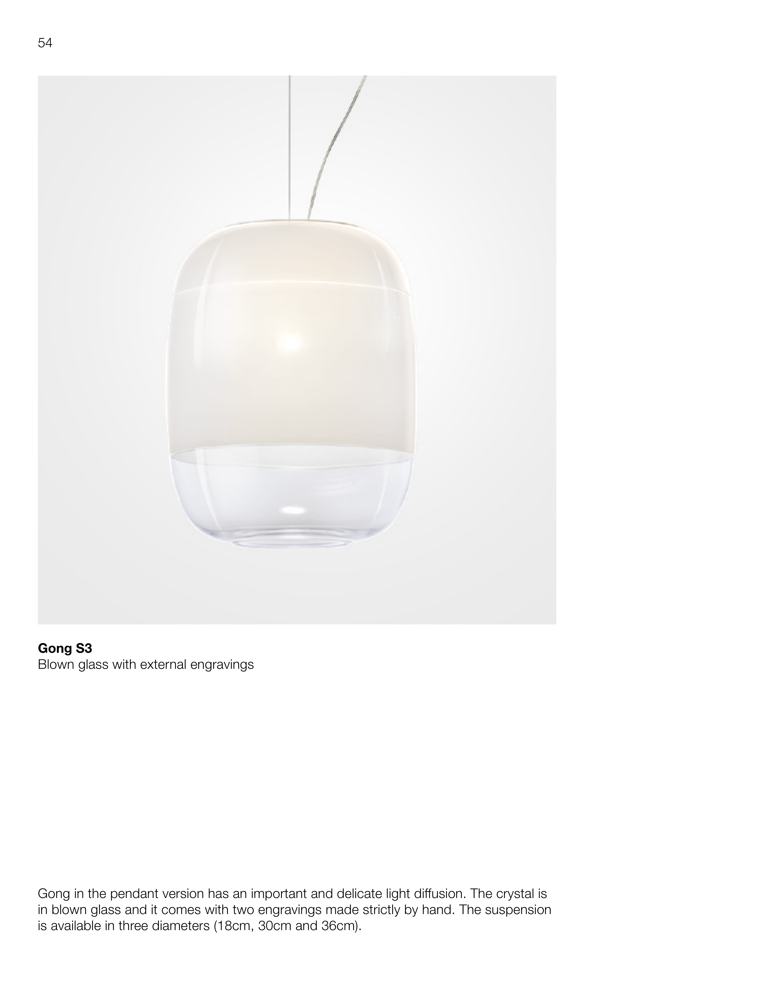 in blown glass and it comes with two engravings made strictly by hand. The suspension