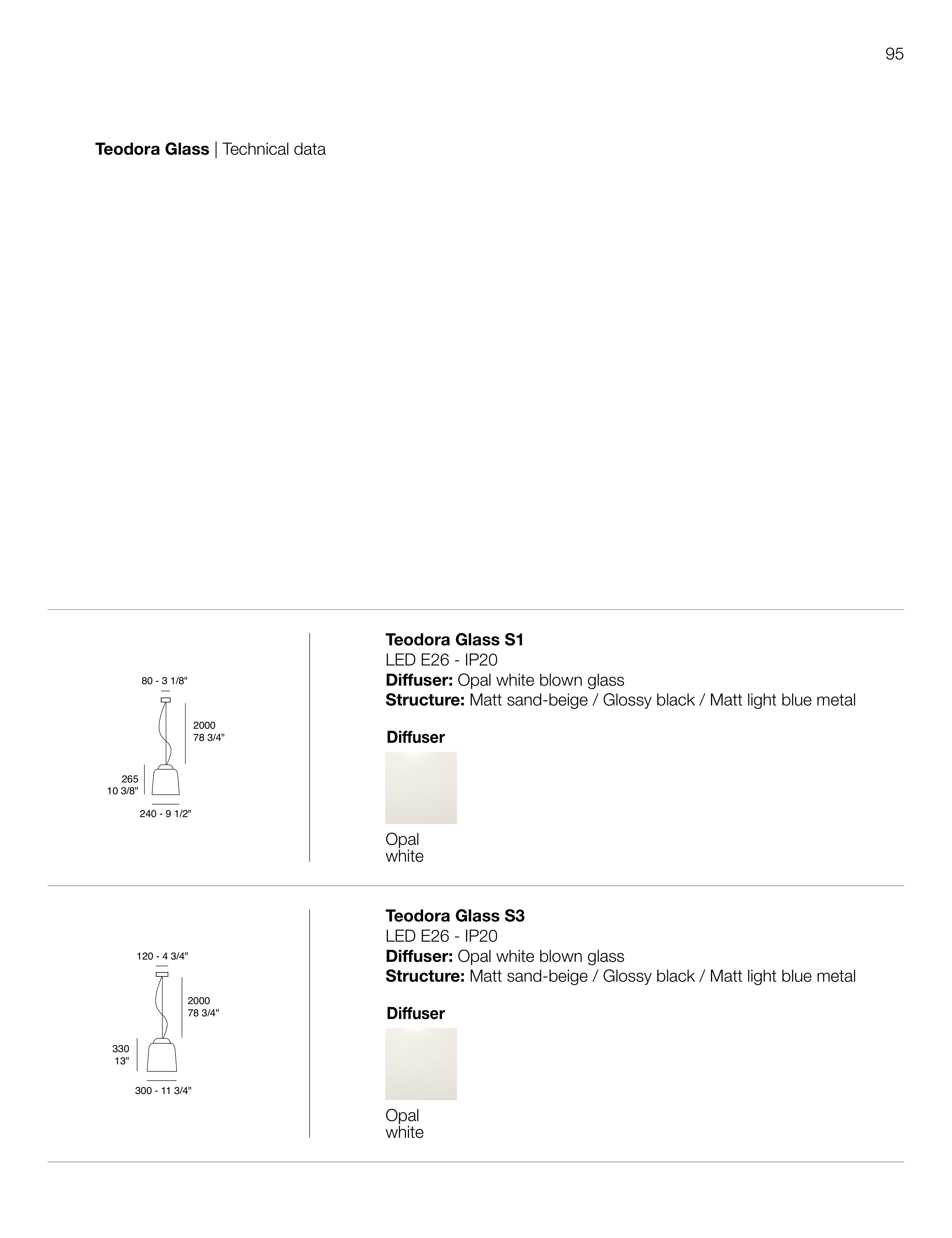 Diffuser: Opal white blown glass