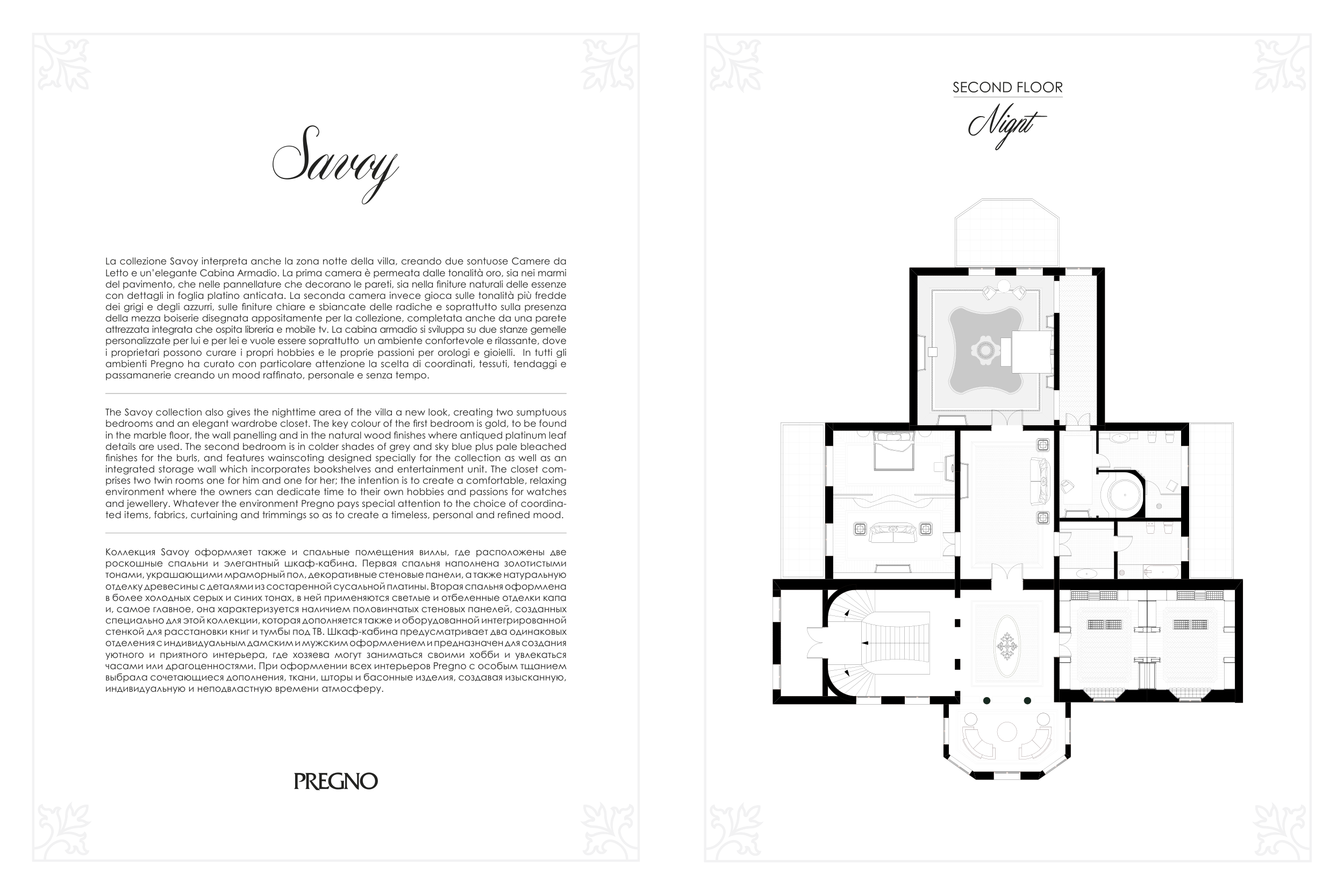 La collezione Savoy interpreta anche la zona notte della villa, creando due sontuose Camere da
