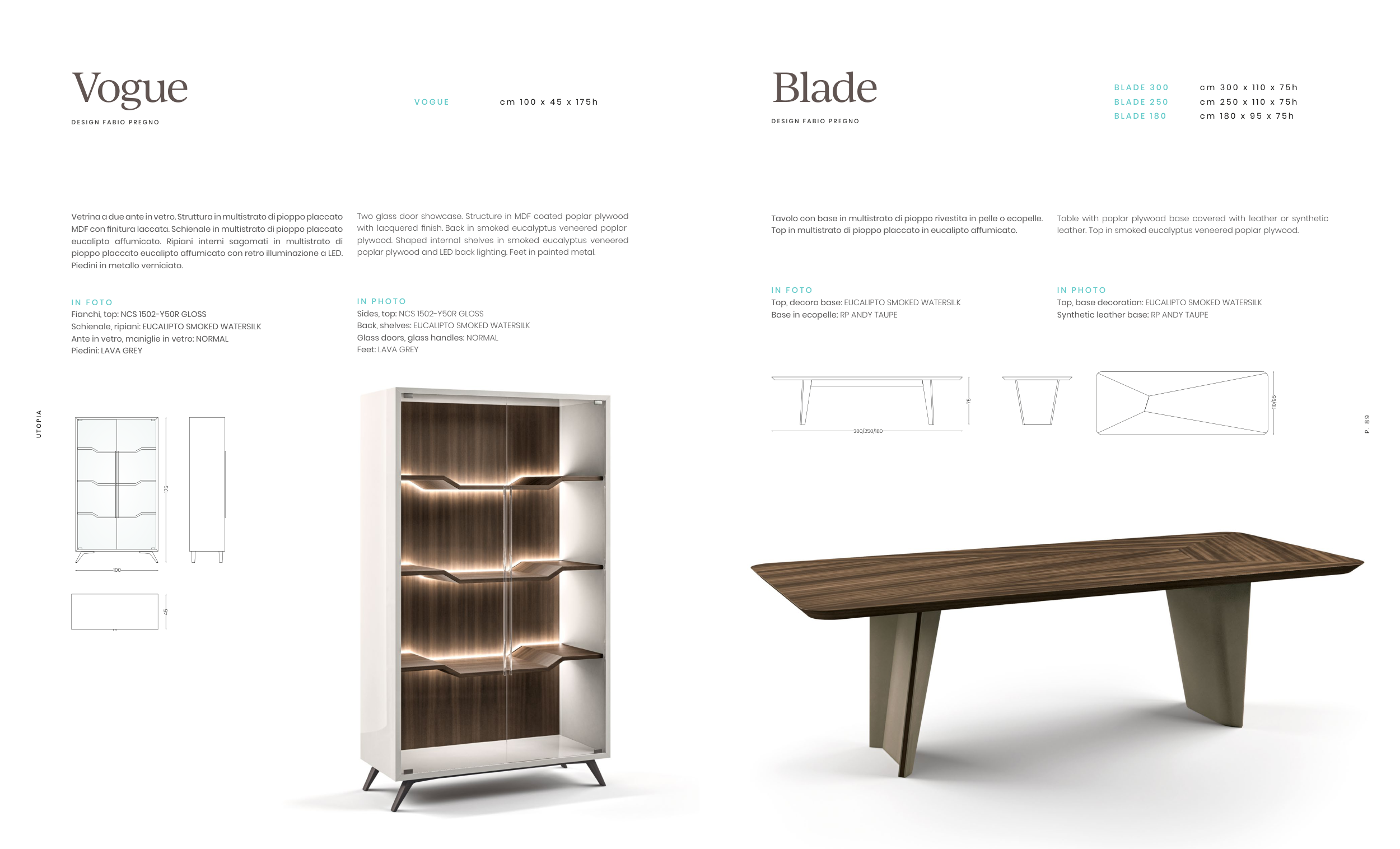 leather. Top in smoked eucalyptus veneered poplar plywood.