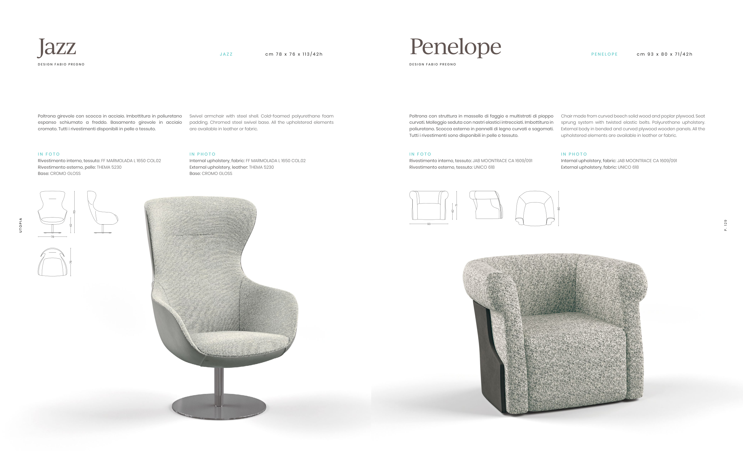 padding. Chromed steel swivel base. All the upholstered elements