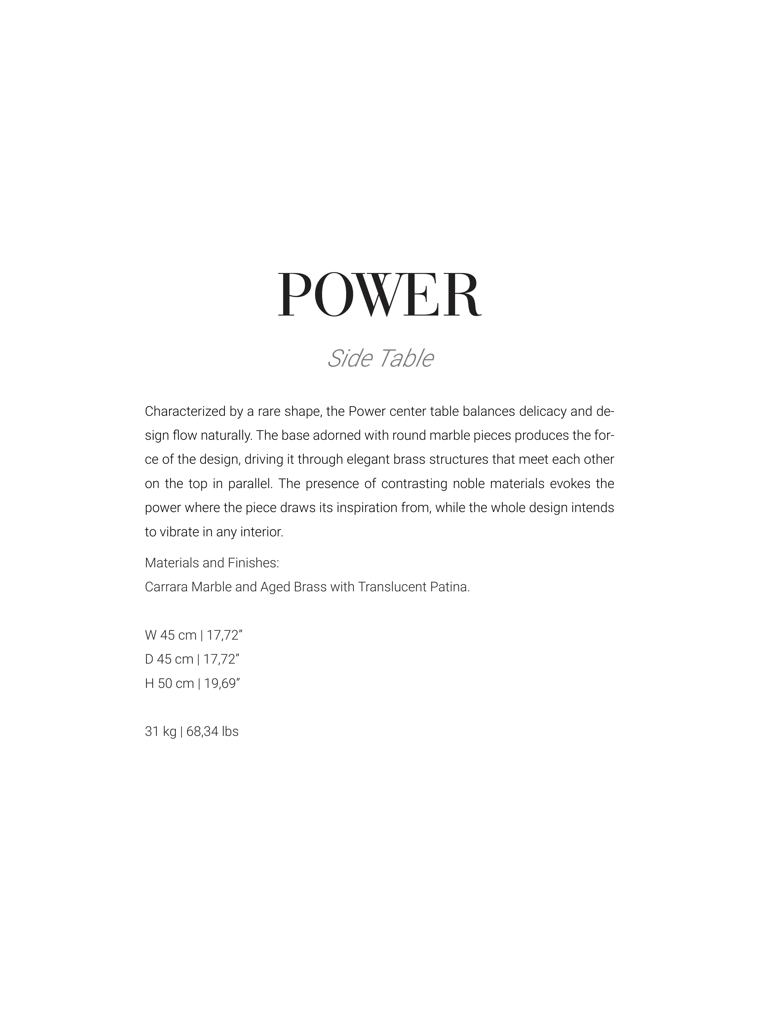 Carrara Marble and Aged Brass with Translucent Patina.