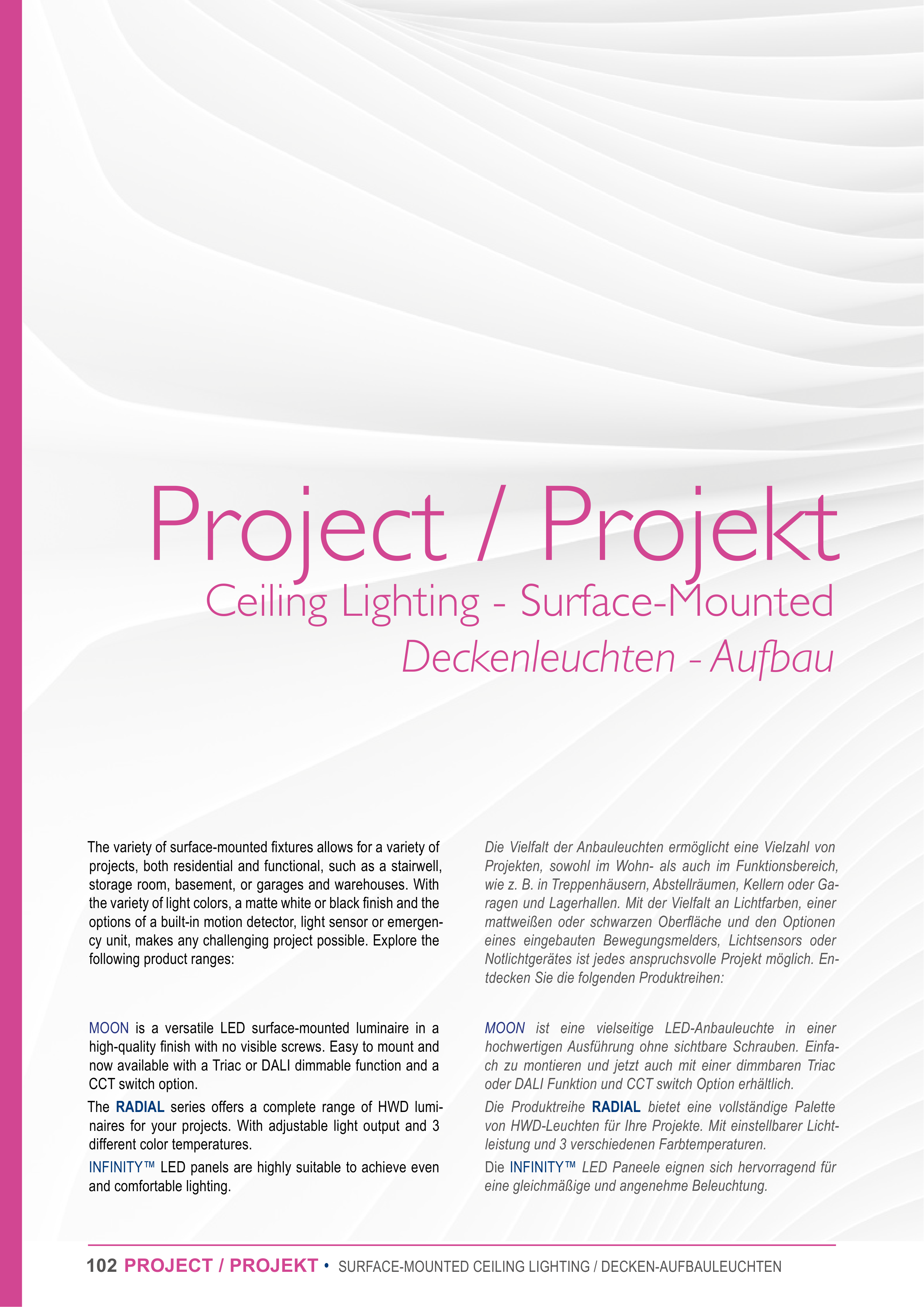 102 PROJECT / PROJEKT • SURFACE-MOUNTED CEILING LIGHTING / DECKEN-AUFBAULEUCHTEN