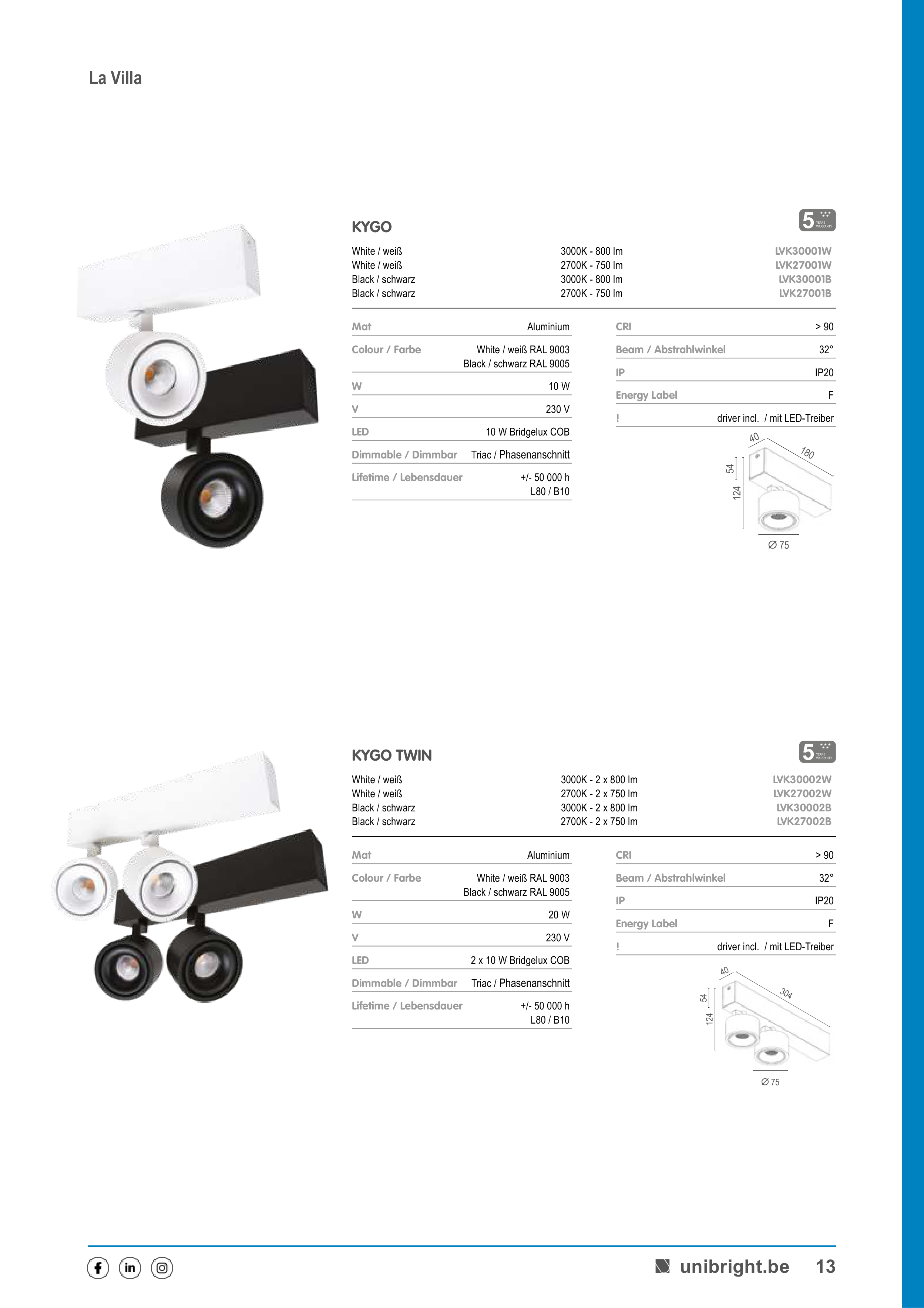 3000K - 2 x 800 lm