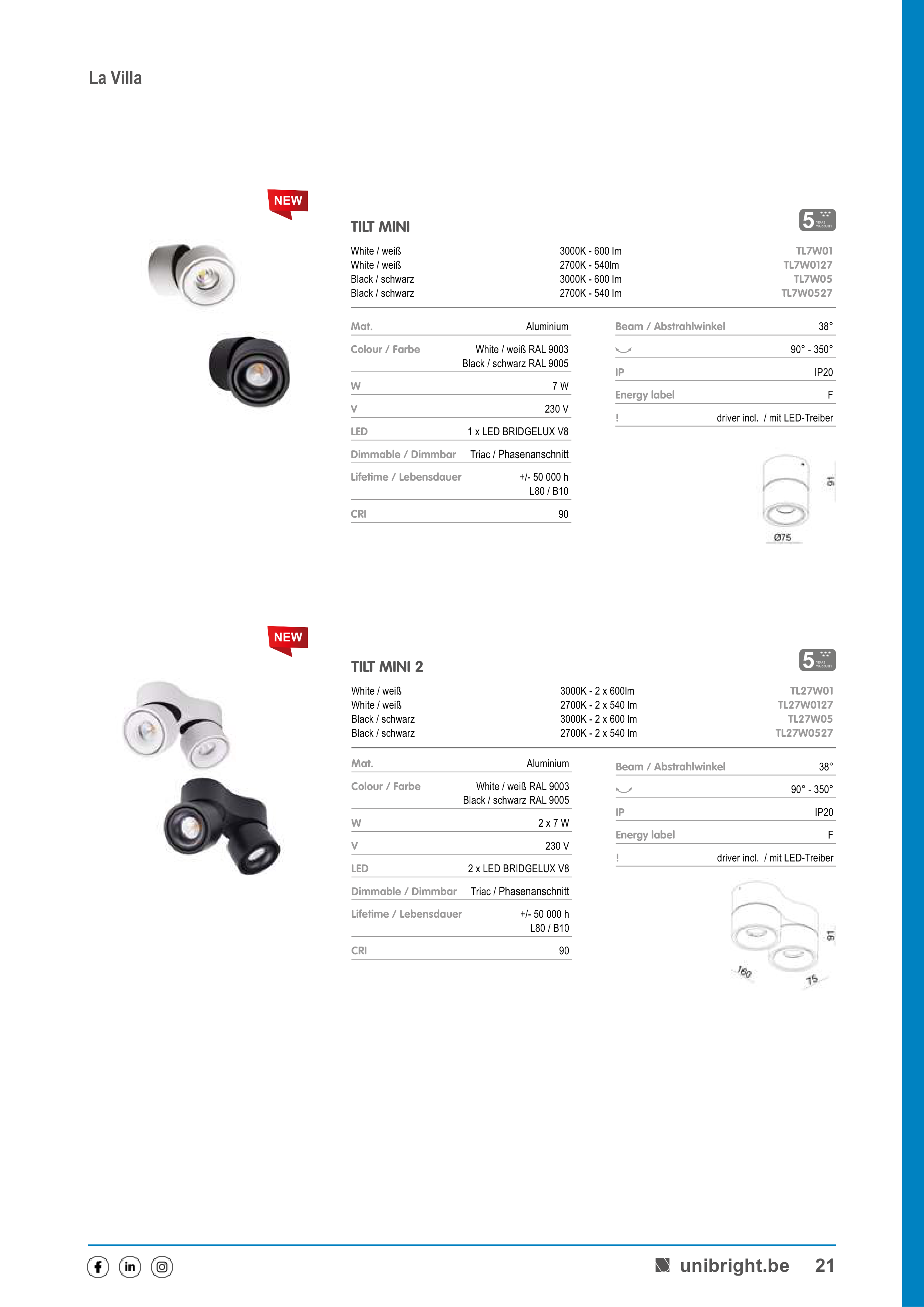3000K - 2 x 600lm