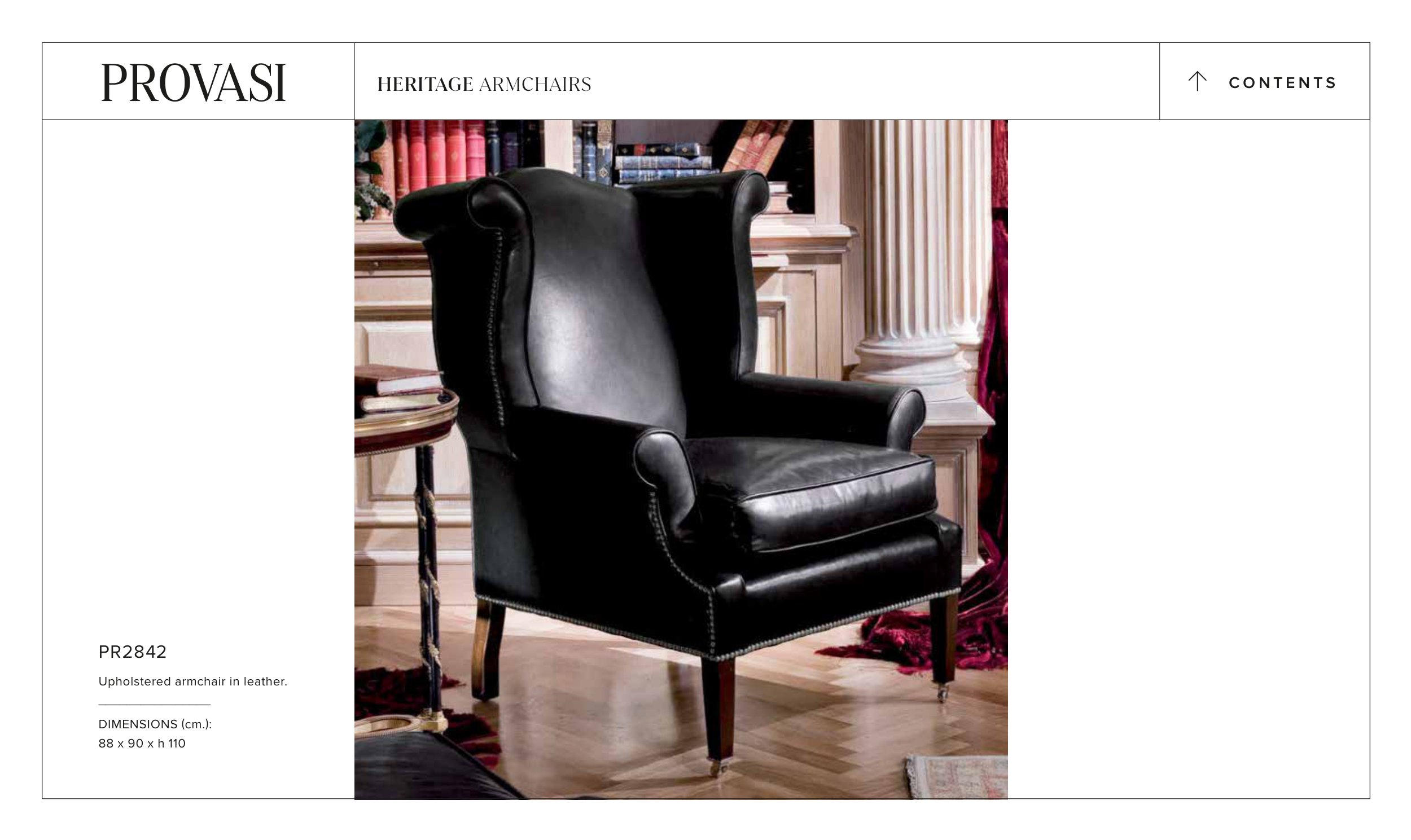 Upholstered armchair in leather.