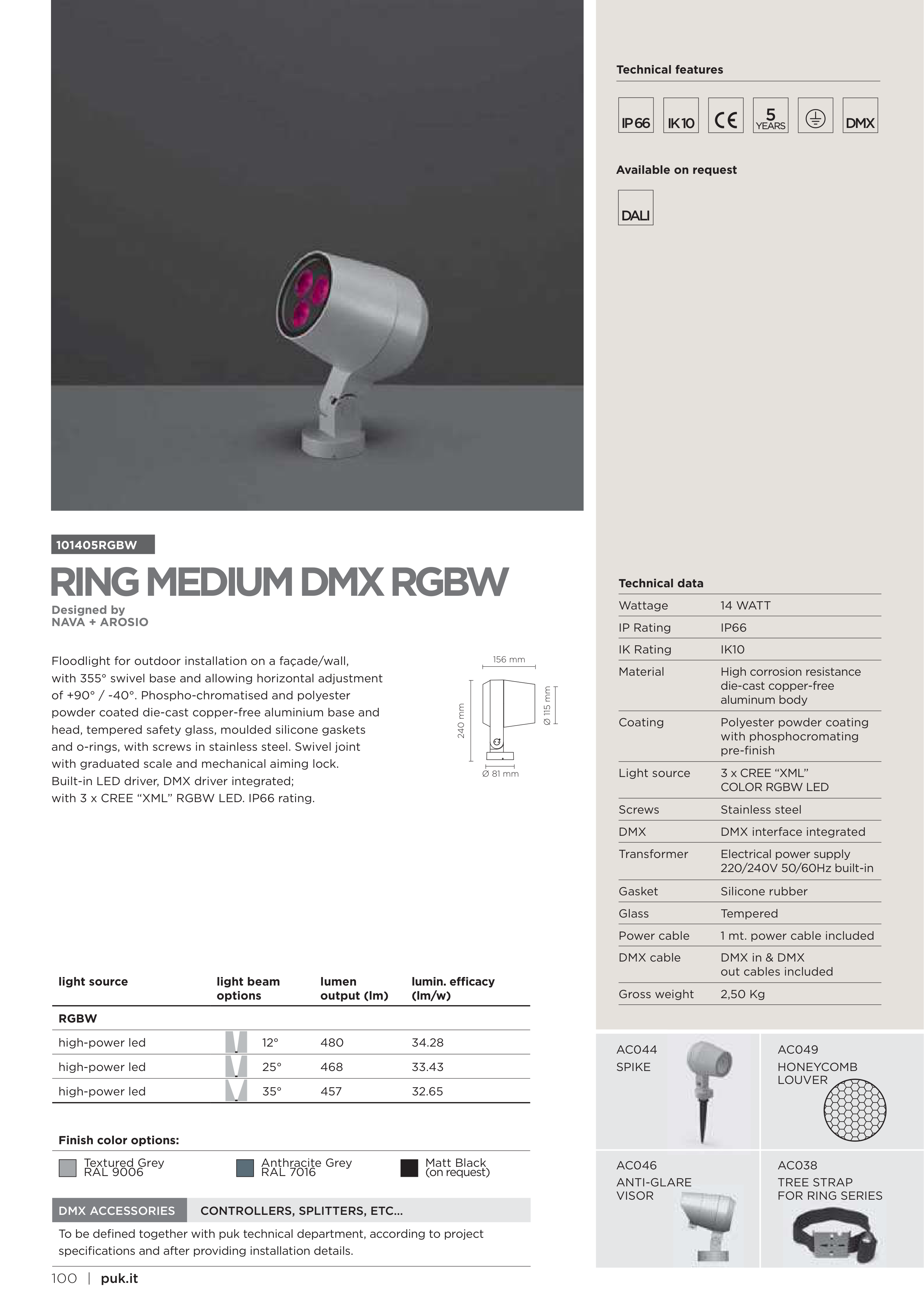 with 3 x CREE “XML” RGBW LED. IP66 rating.