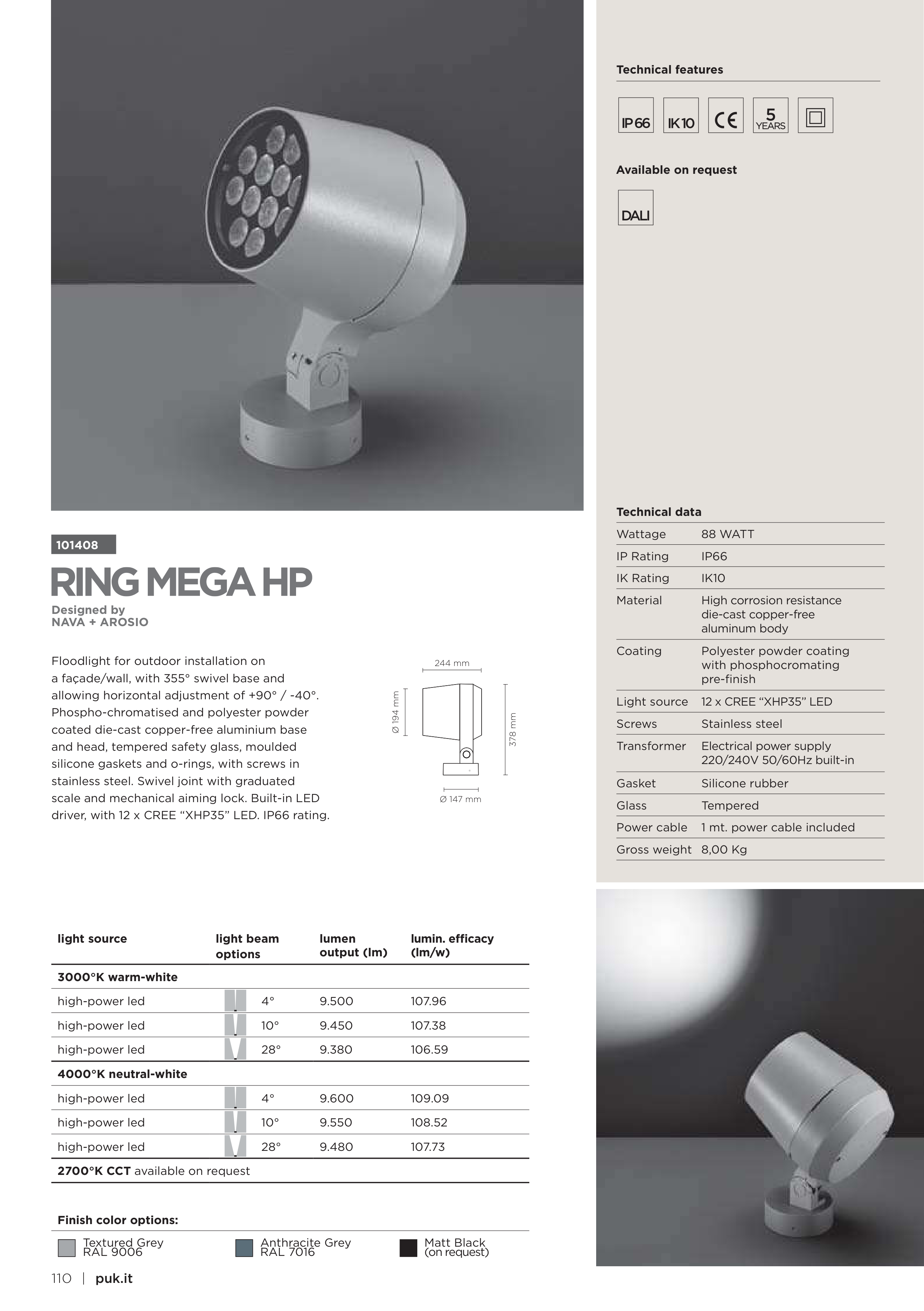 driver, with 12 x CREE “XHP35” LED. IP66 rating.