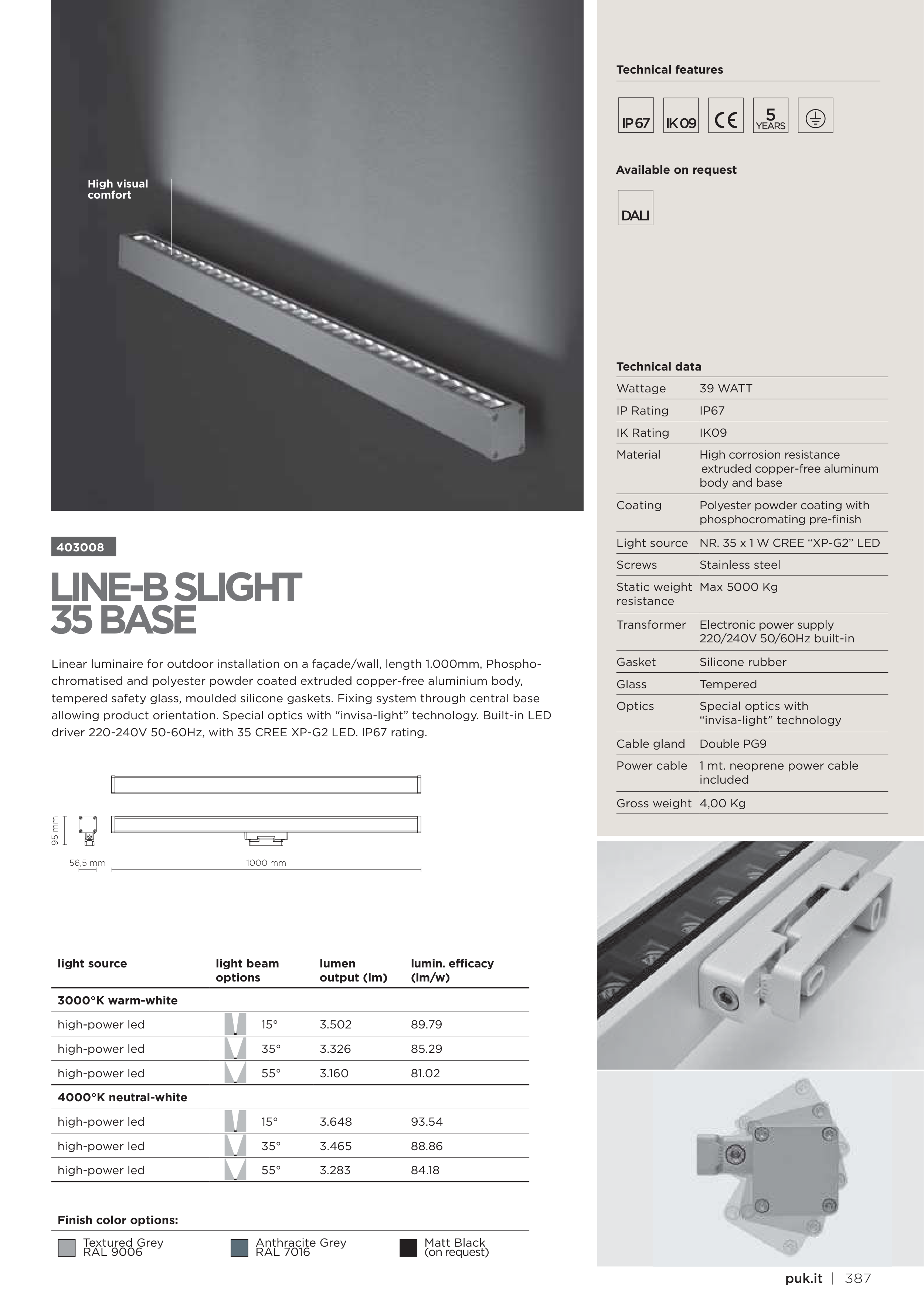 allowing product orientation. Special optics with “invisa-light” technology. Built-in LED