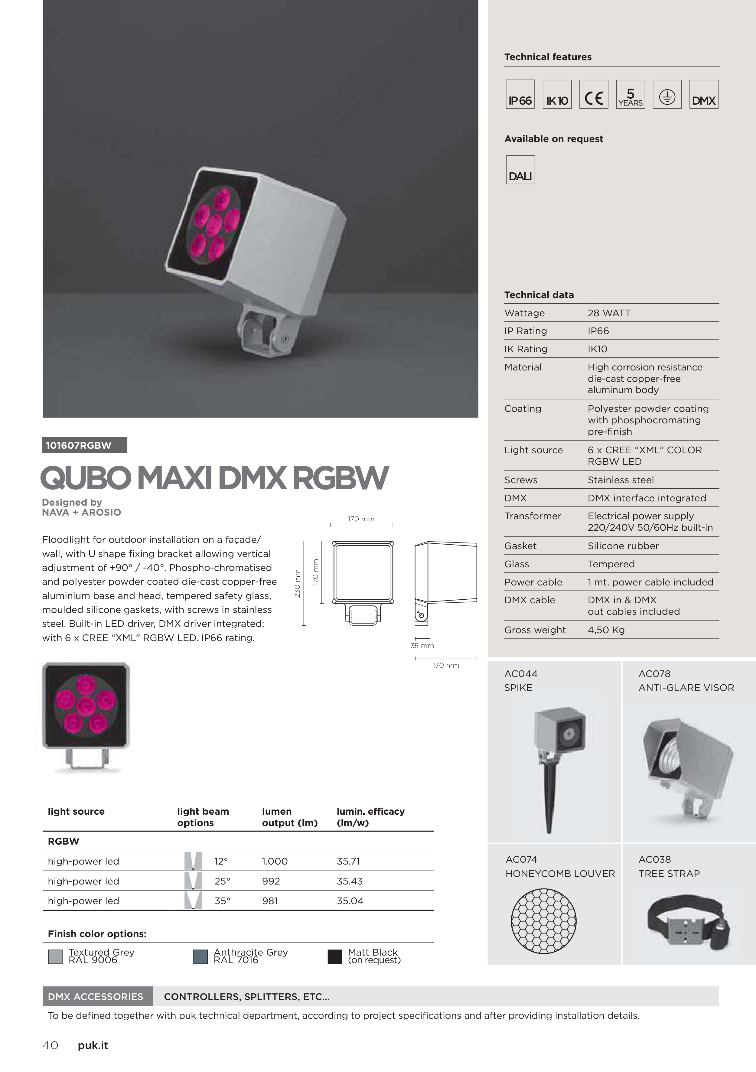 steel. Built-in LED driver, DMX driver integrated;