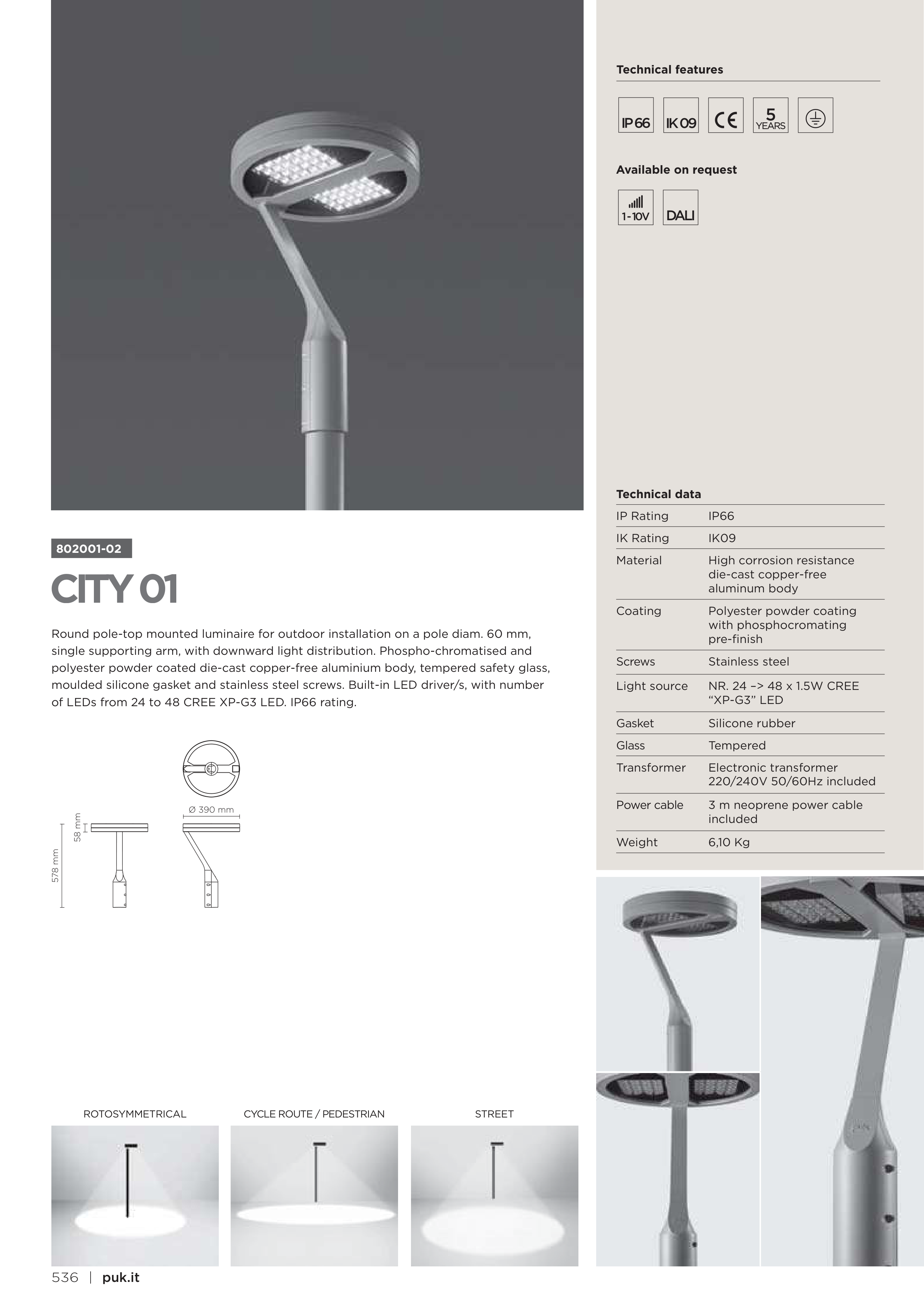 single supporting arm, with downward light distribution. Phospho-chromatised and