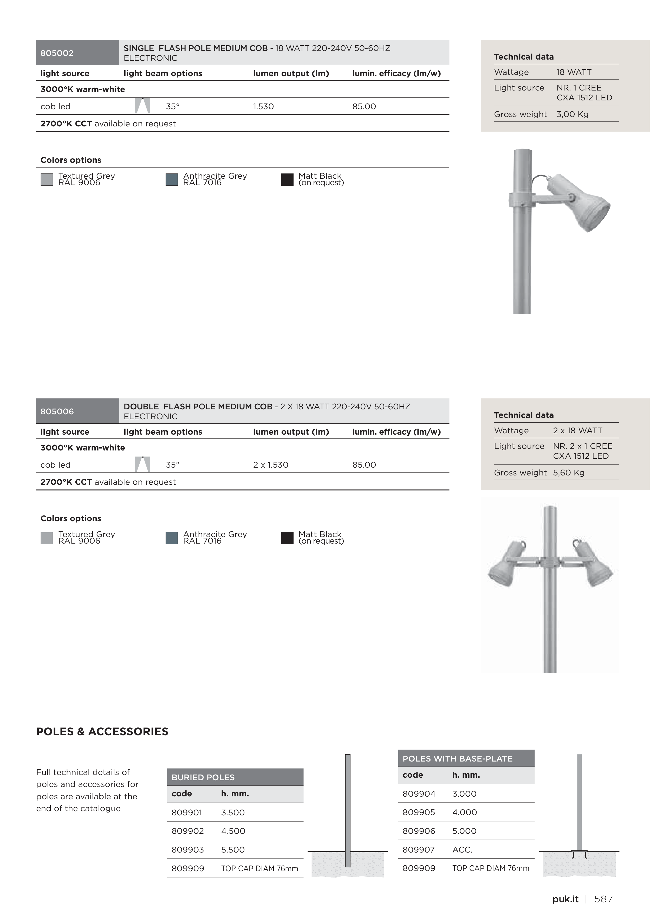 DOUBLE FLASH POLE MEDIUM COB - 2 X 18 WATT 220-240V 50-60HZ