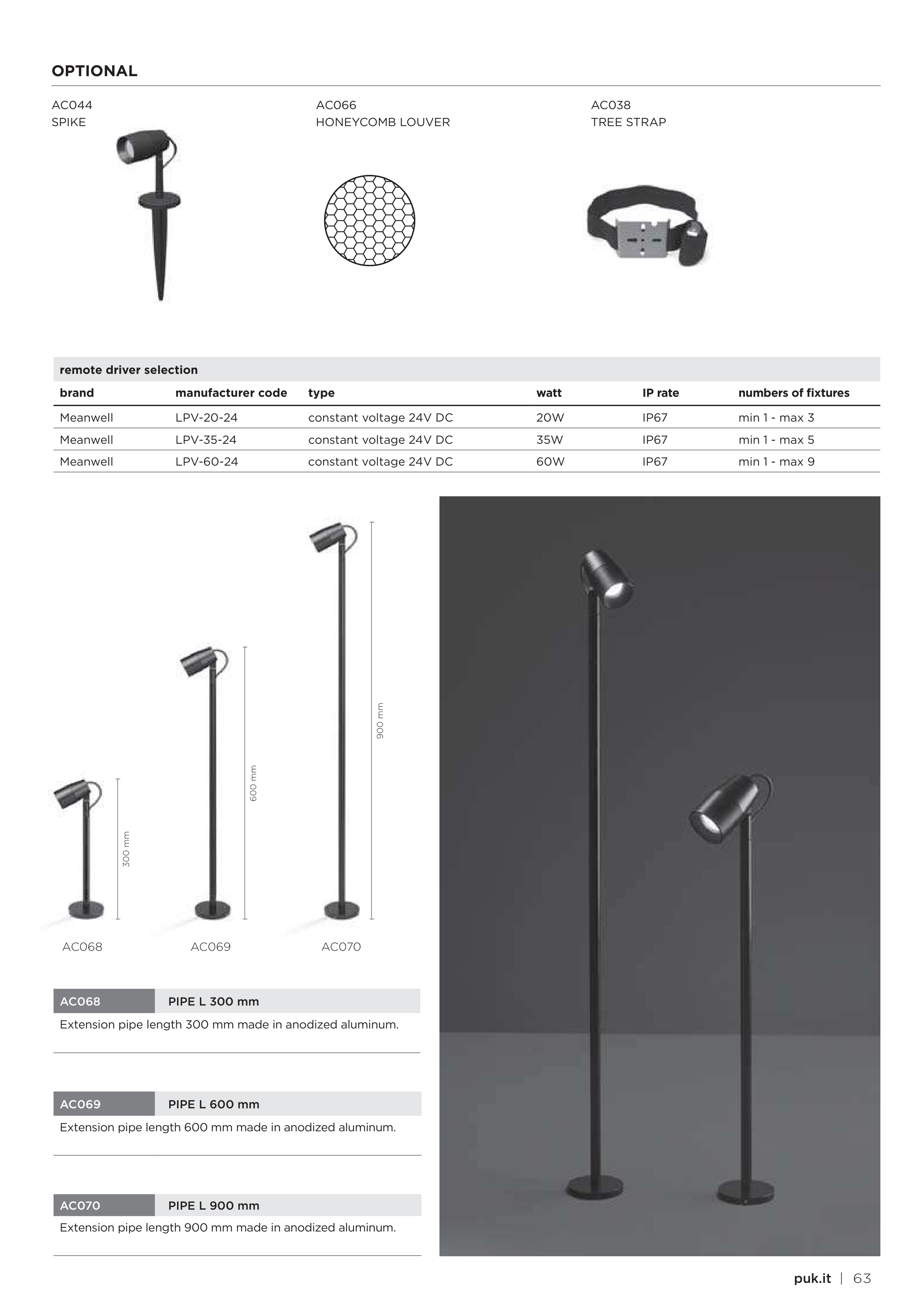 Extension pipe length 900 mm made in anodized aluminum.