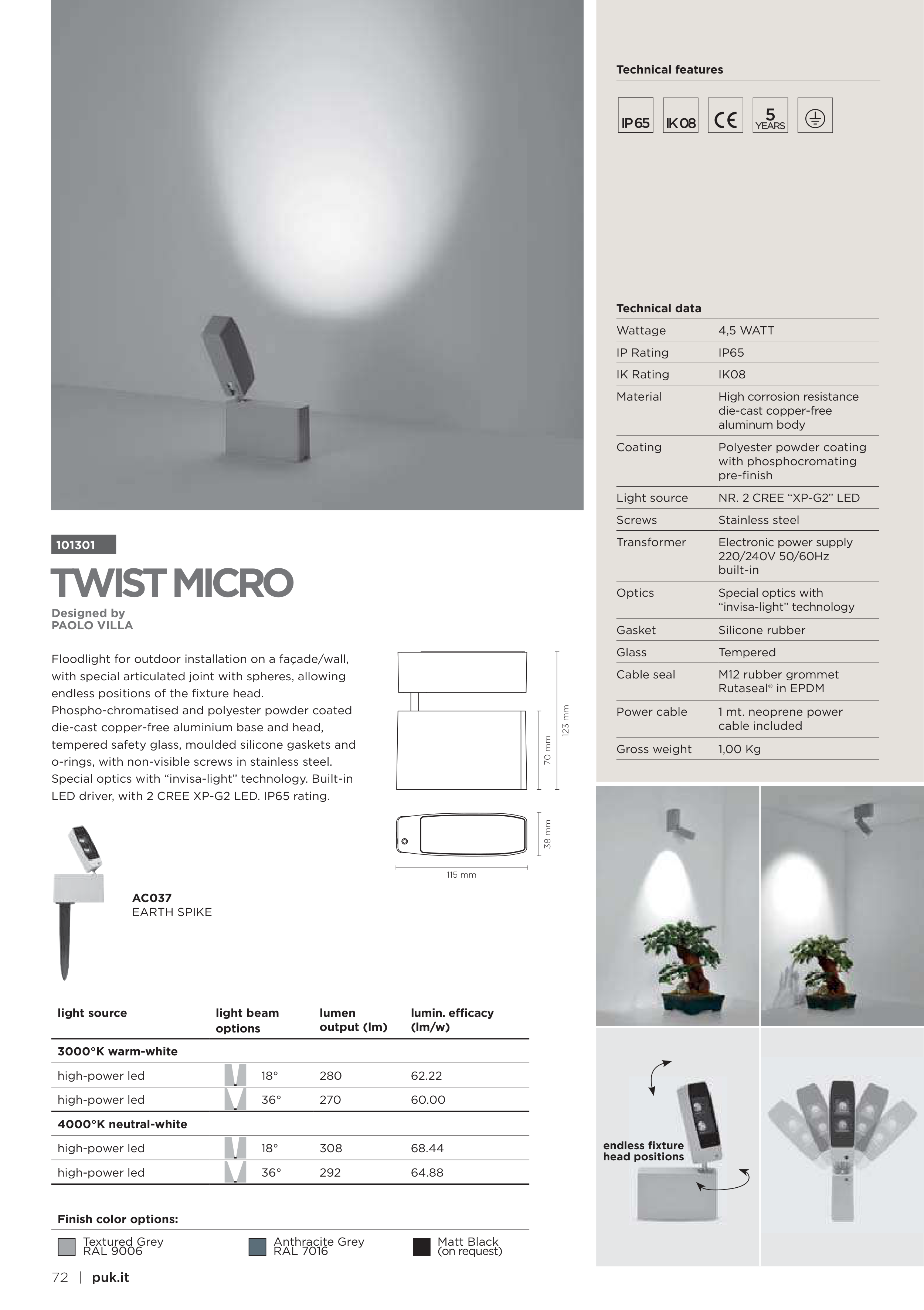 Special optics with “invisa-light” technology. Built-in