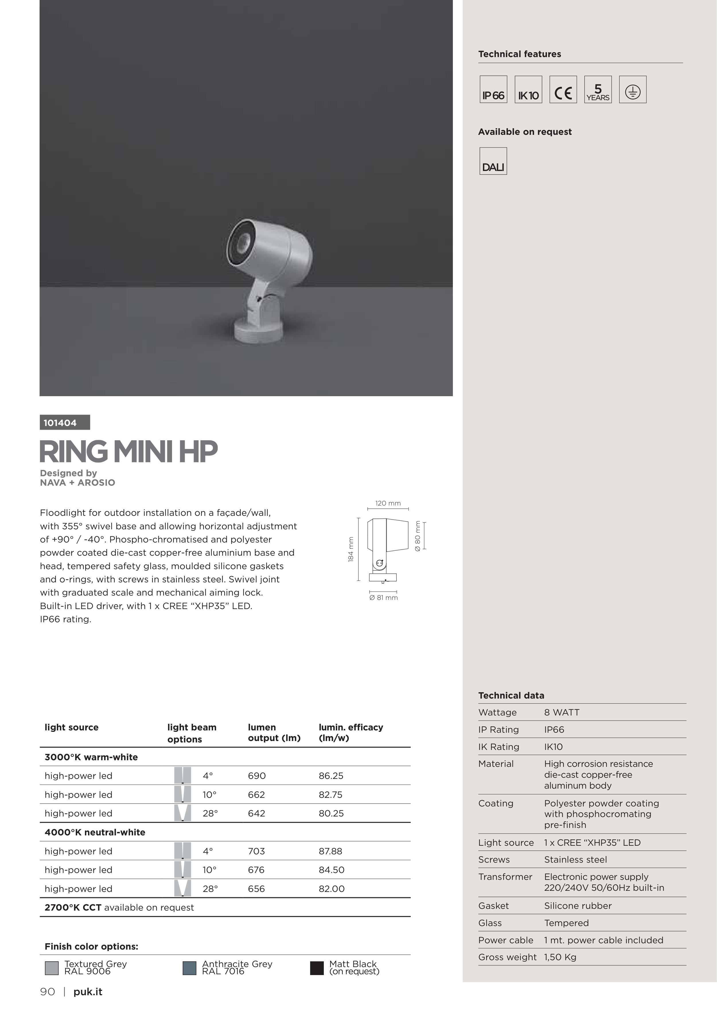 Built-in LED driver, with 1 x CREE “XHP35” LED.