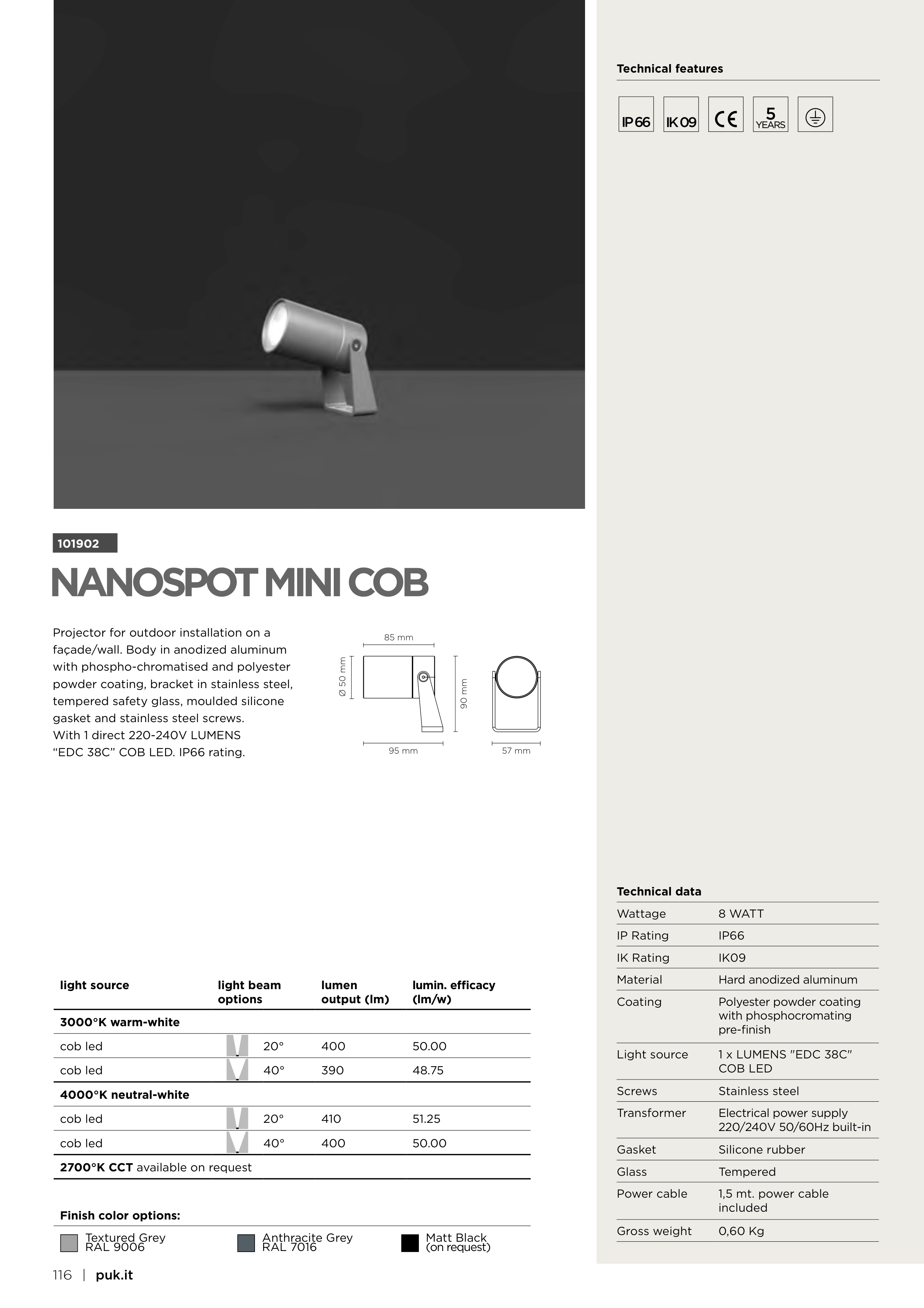 façade/wall. Body in anodized aluminum