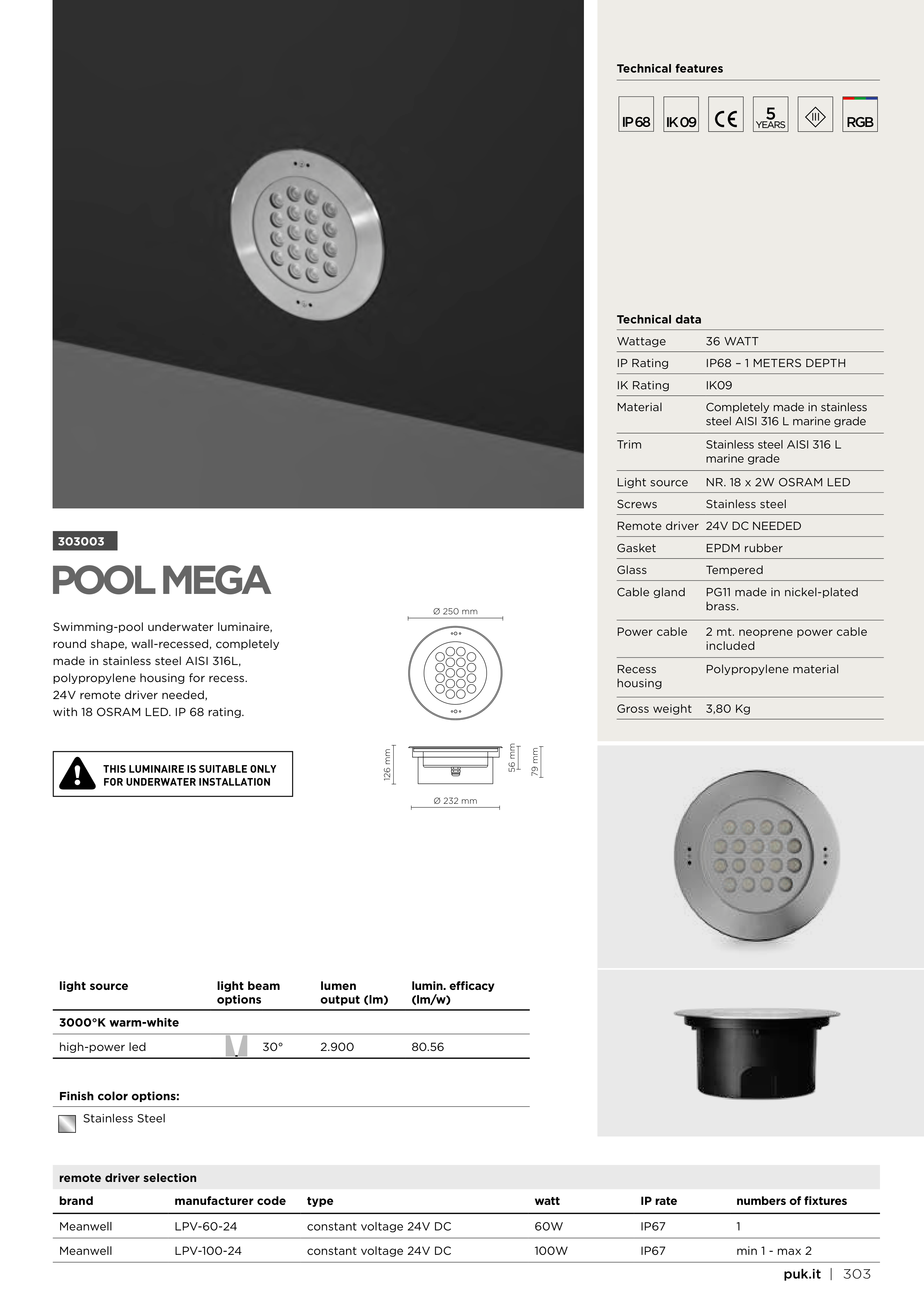 with 18 OSRAM LED. IP 68 rating.