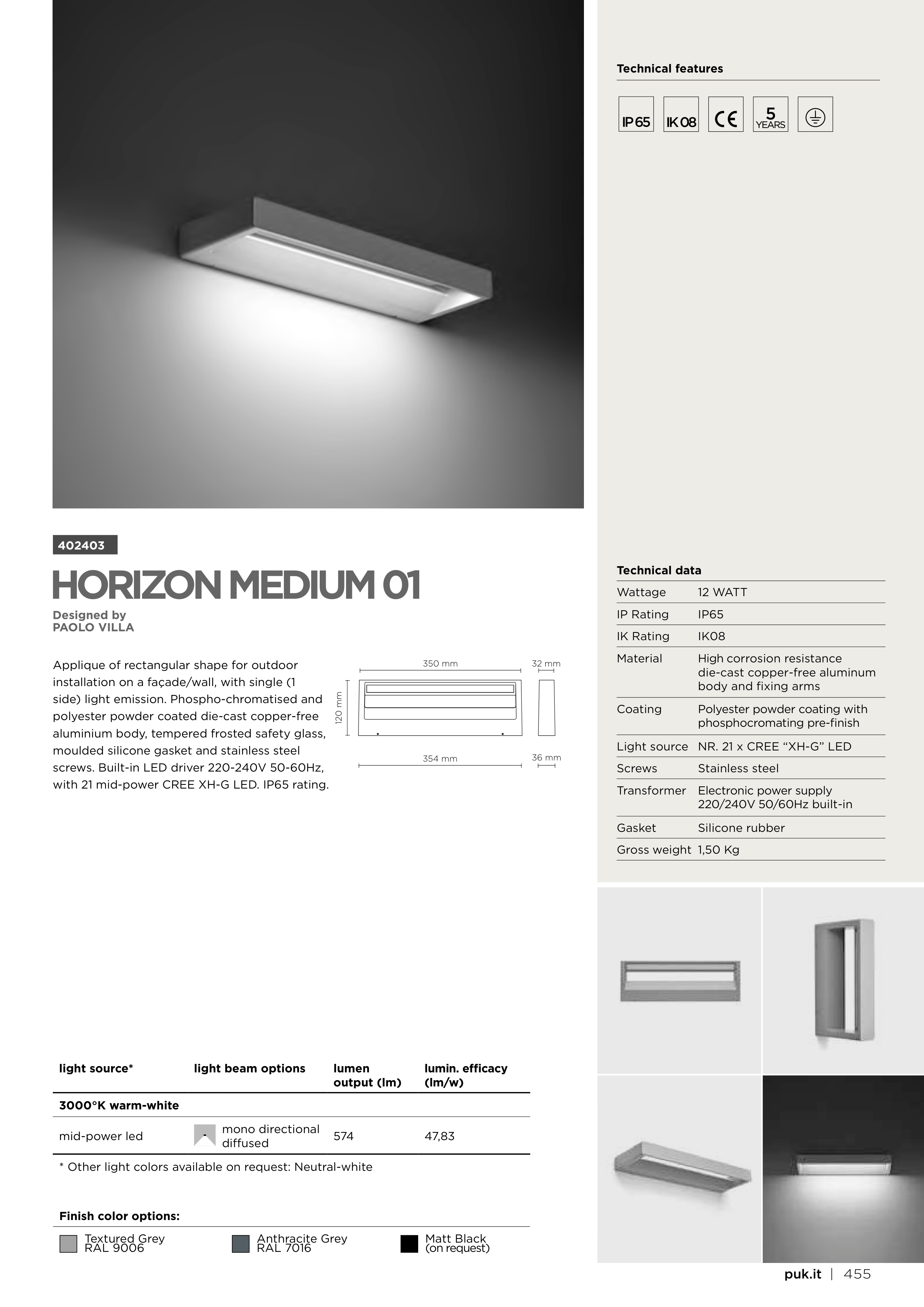 * Other light colors available on request: Neutral-white