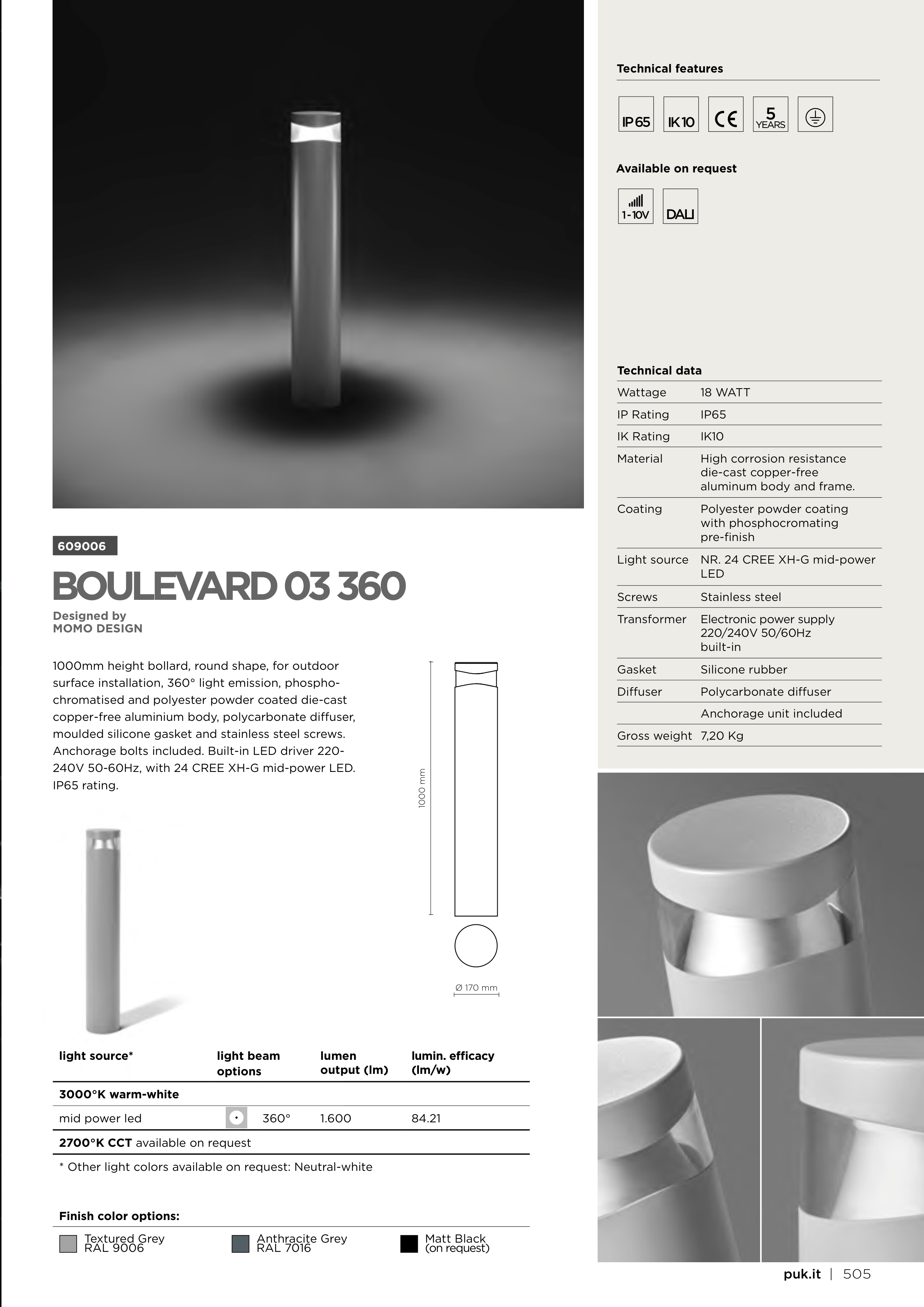 surface installation, 360° light emission, phospho-
