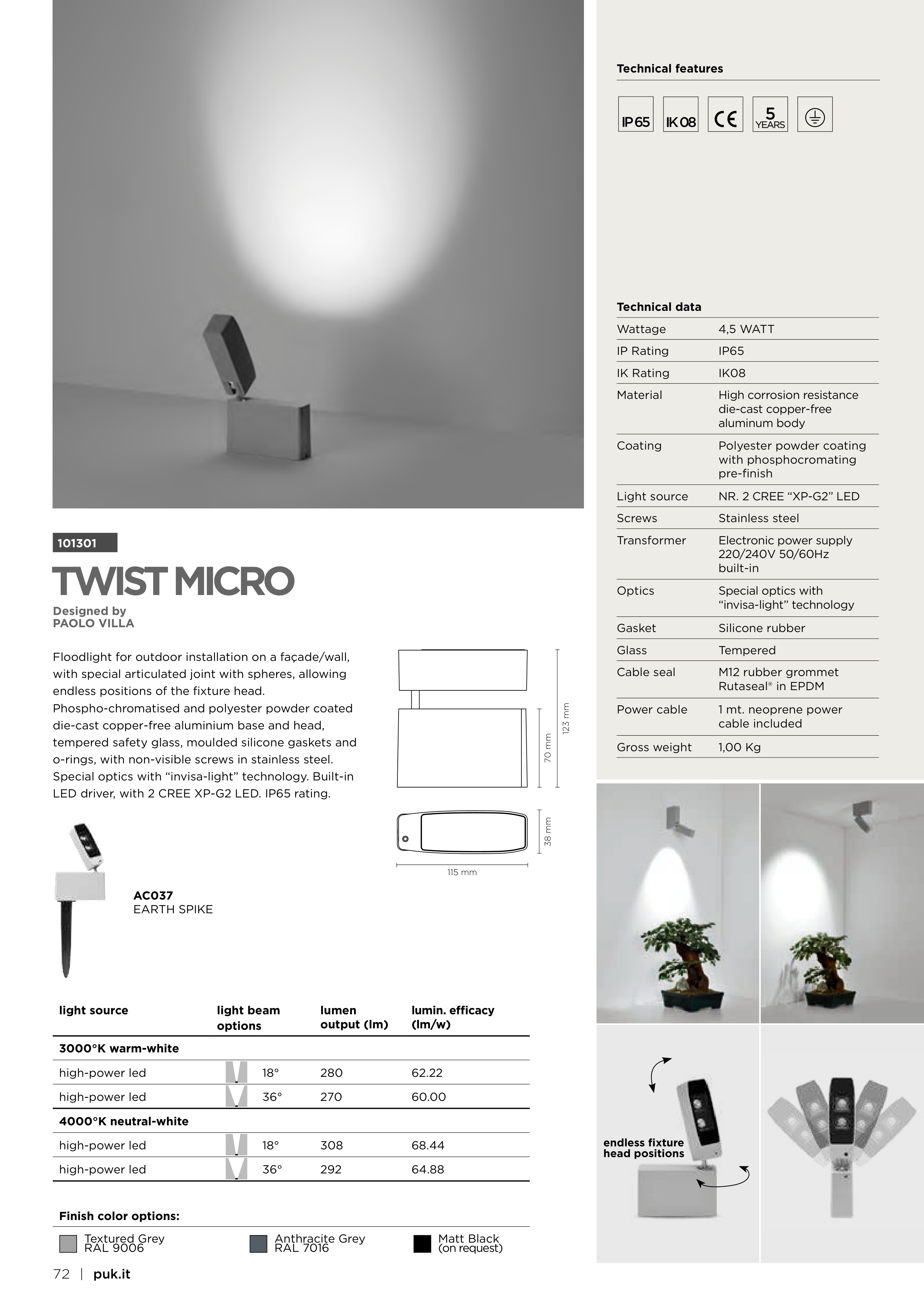 Special optics with “invisa-light” technology. Built-in