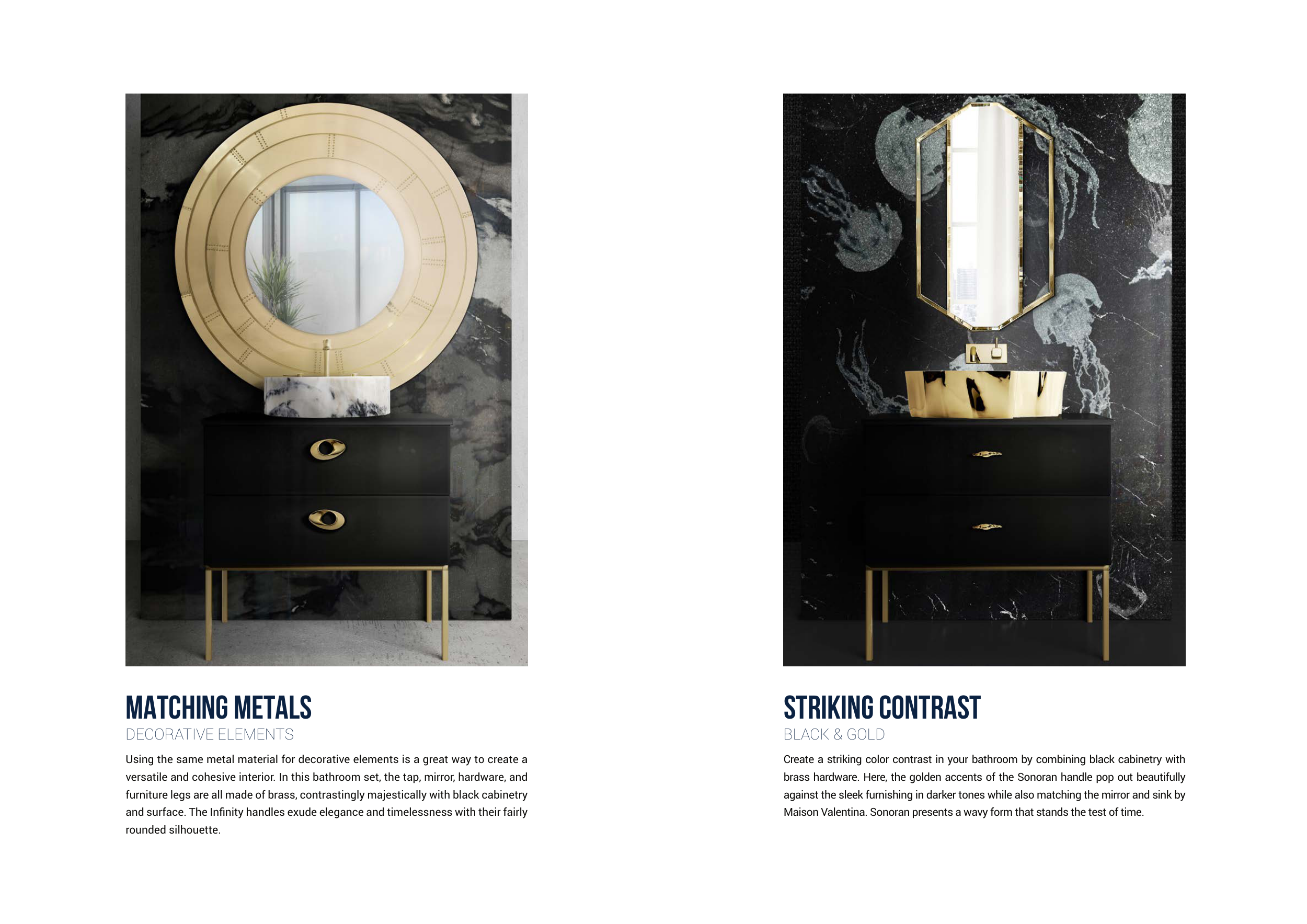 against the sleek furnishing in darker tones while also matching the mirror and sink by