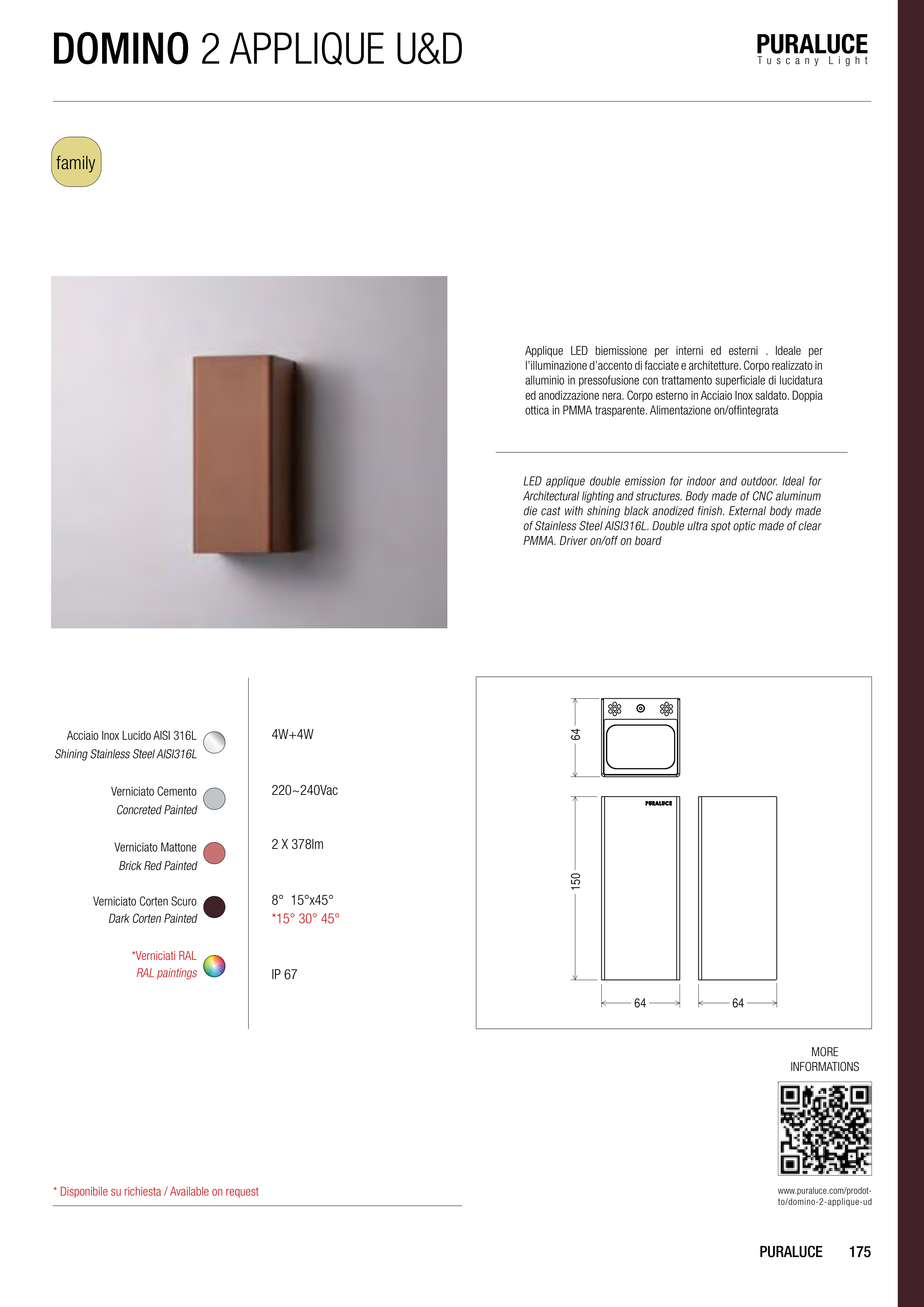 LED applique double emission for indoor and outdoor. Ideal for