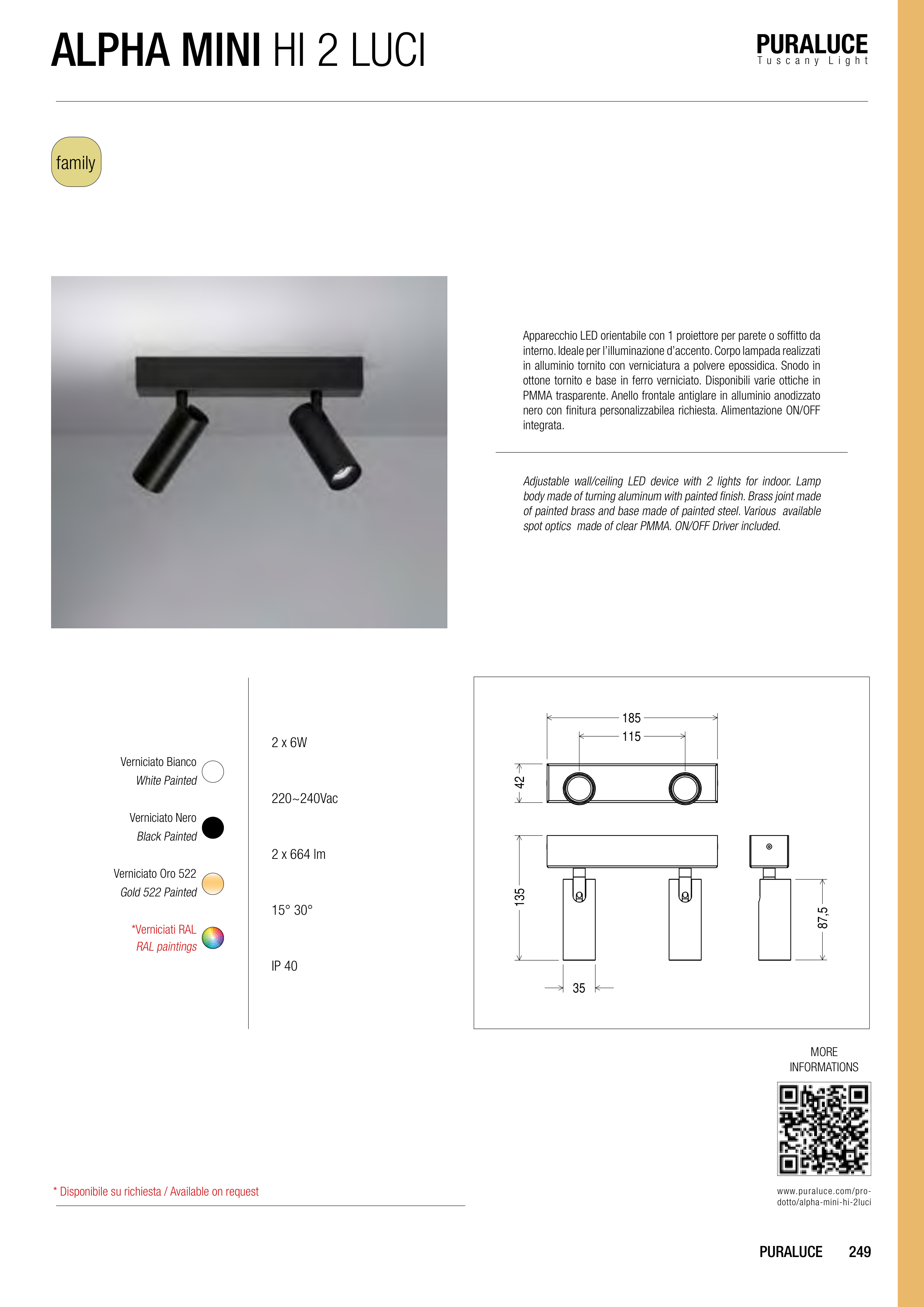 interno. Ideale per l’illuminazione d’accento. Corpo lampada realizzati