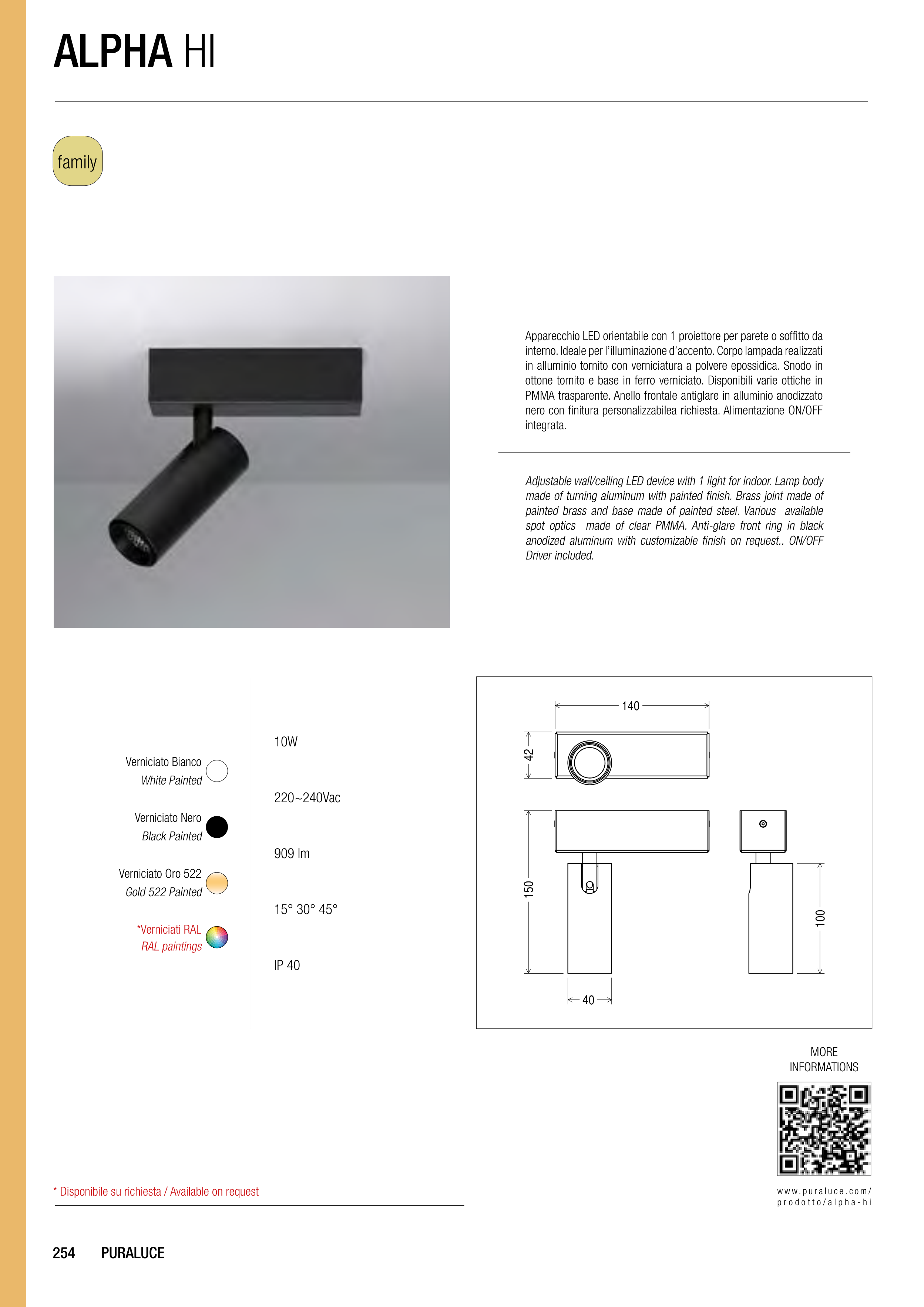 interno. Ideale per l’illuminazione d’accento. Corpo lampada realizzati