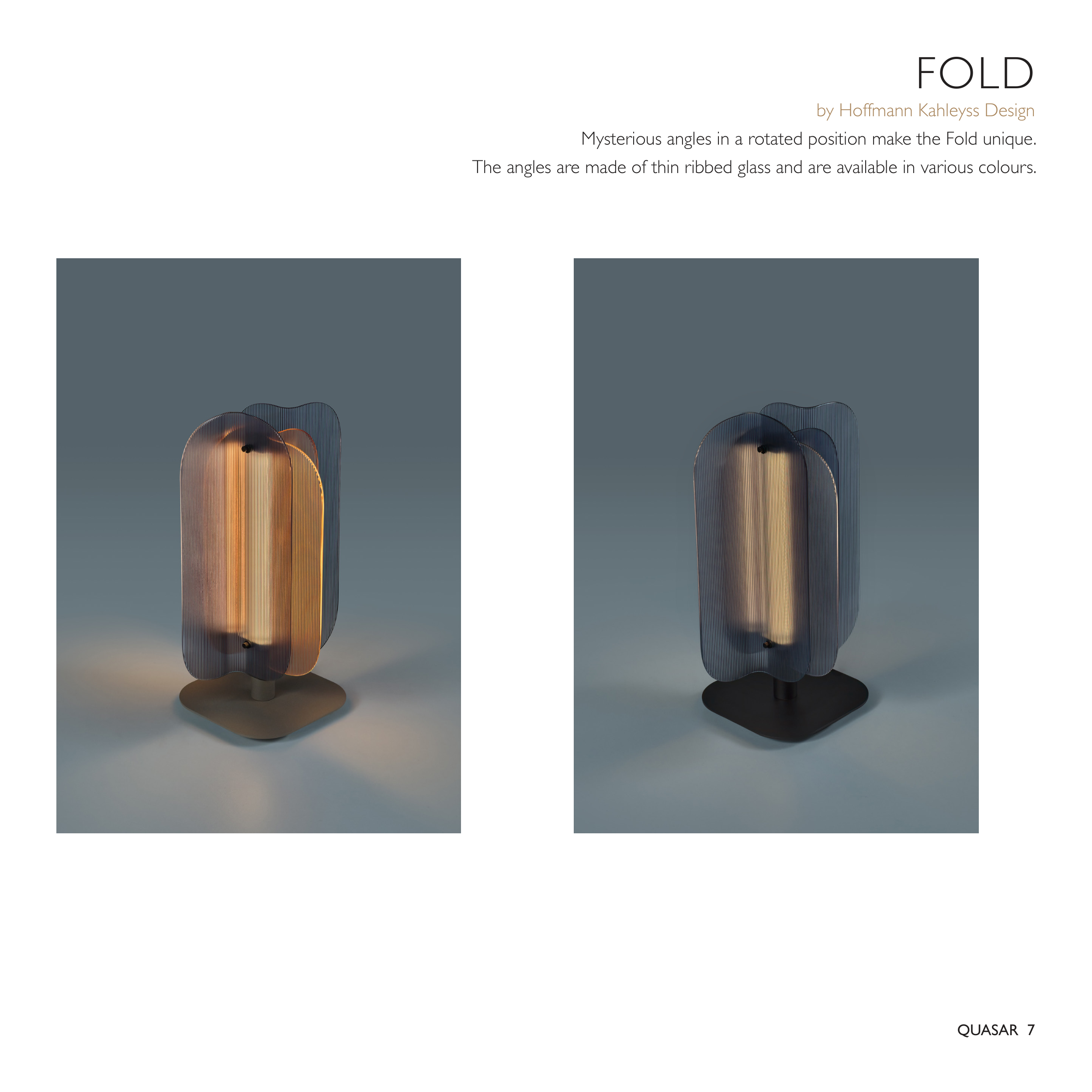 The angles are made of thin ribbed glass and are available in various colours.