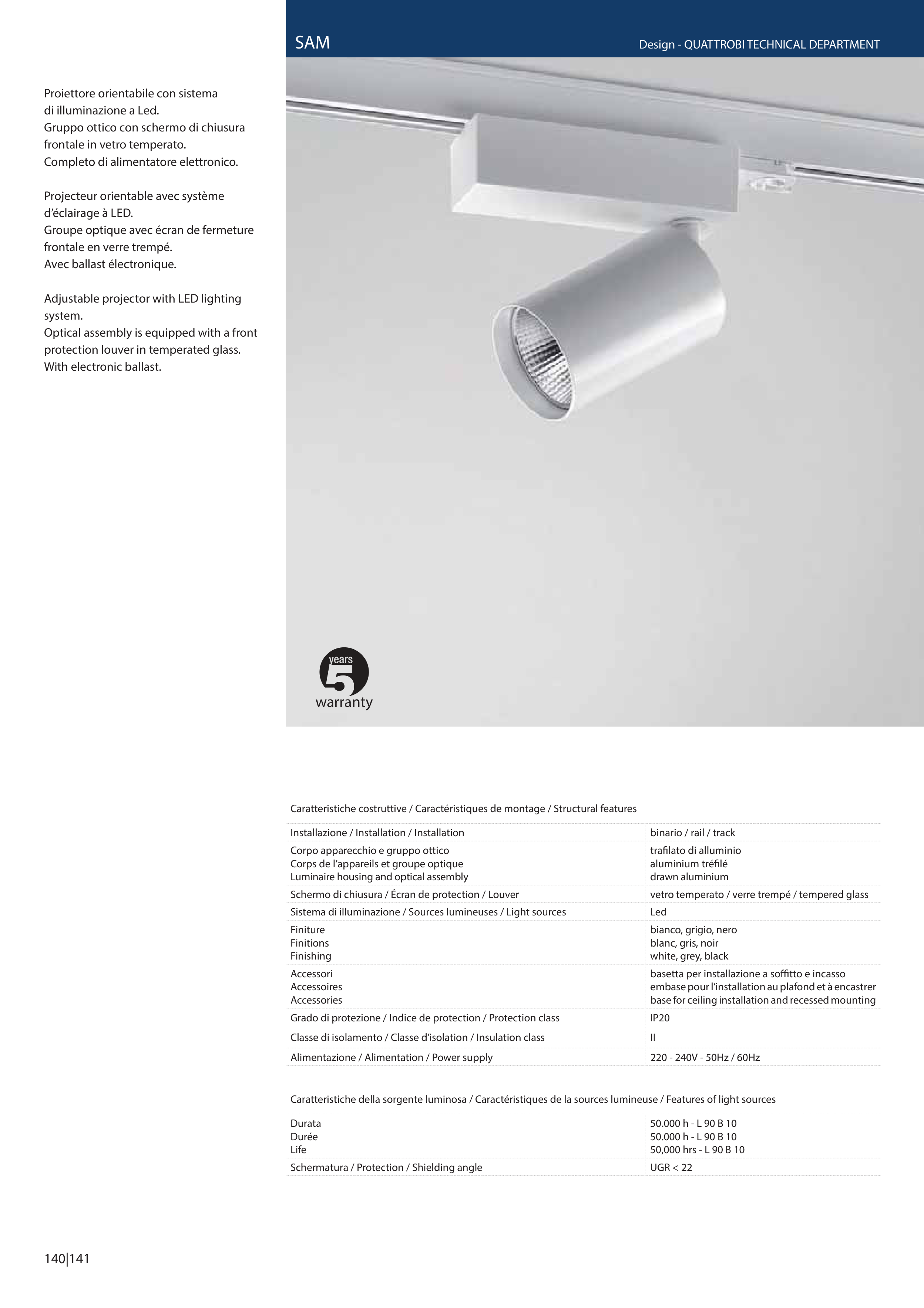 Caratteristiche della sorgente luminosa / Caractéristiques de la sources lumineuse / Features of light sources