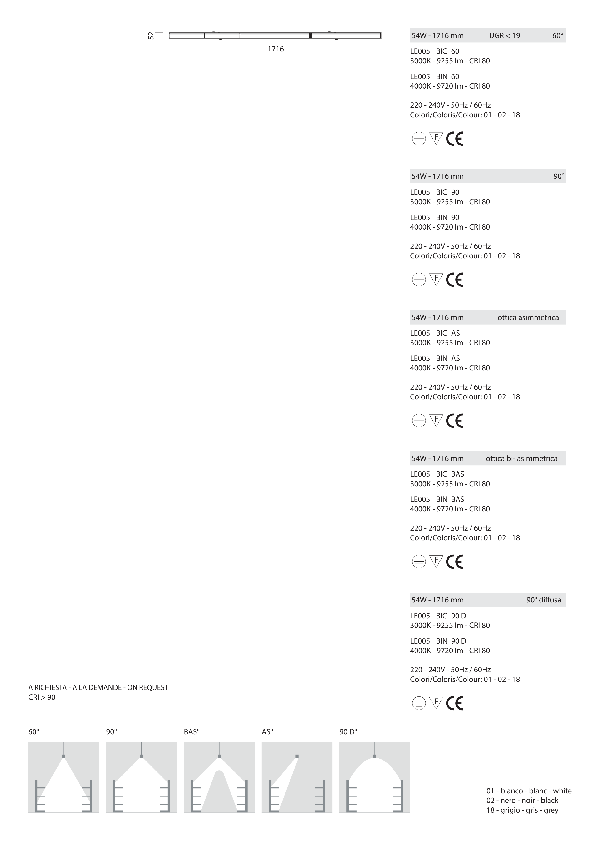 54W - 1716 mm ottica asimmetrica