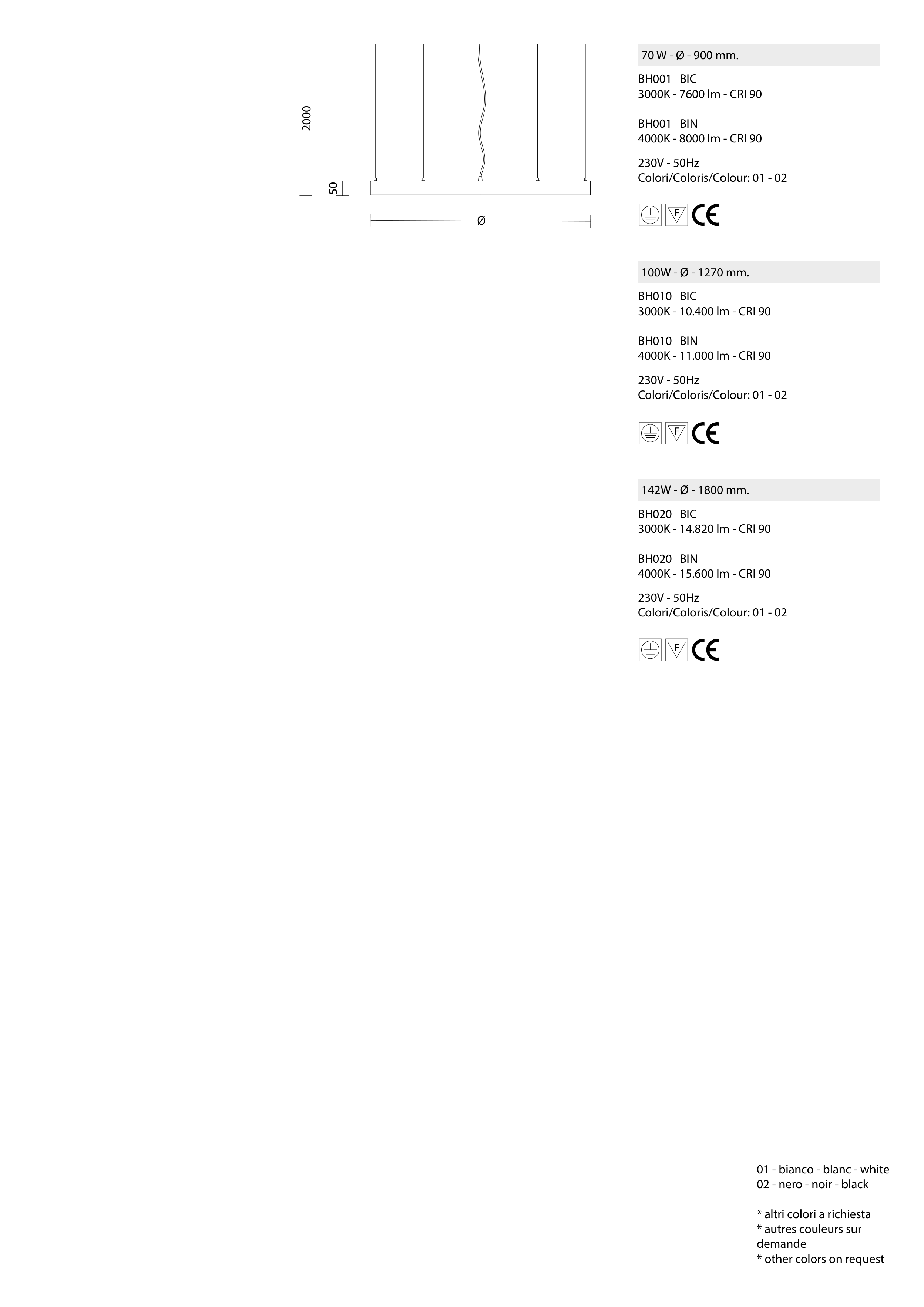 70 W - Ø - 900 mm.