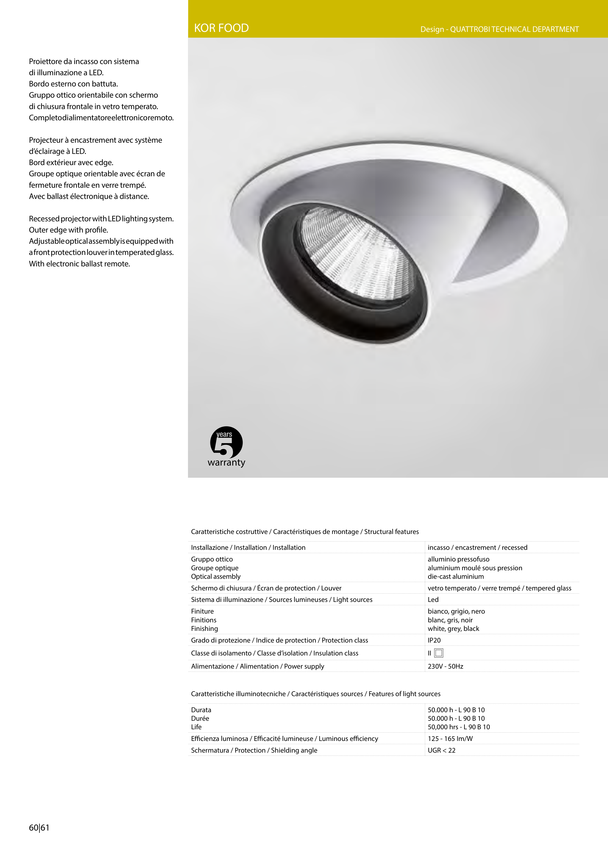 Caratteristiche illuminotecniche / Caractéristiques sources / Features of light sources