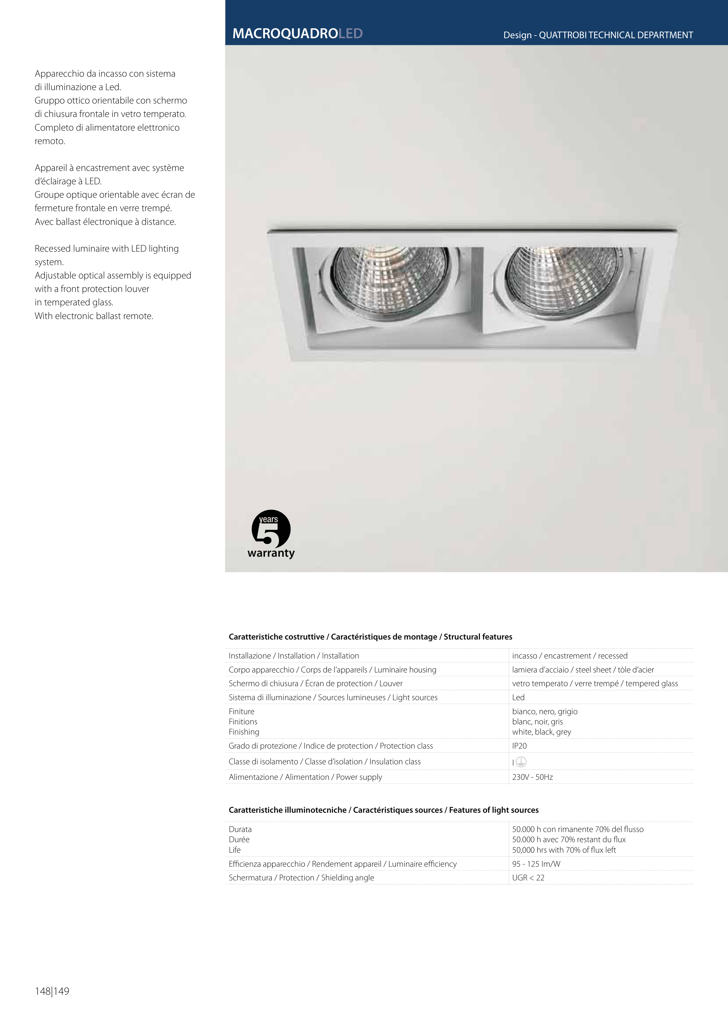 Caratteristiche illuminotecniche / Caractéristiques sources / Features of light sources