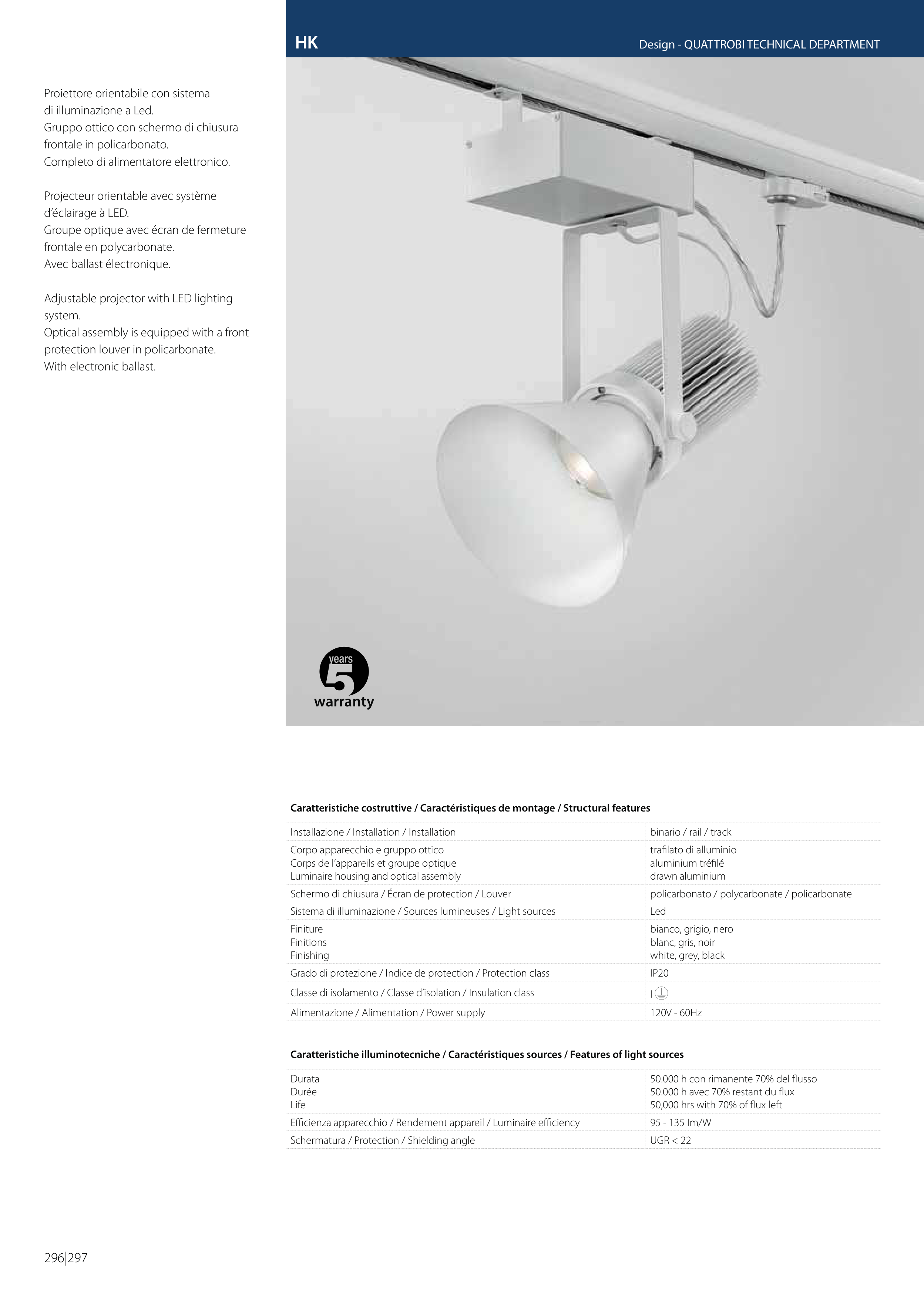 Caratteristiche illuminotecniche / Caractéristiques sources / Features of light sources