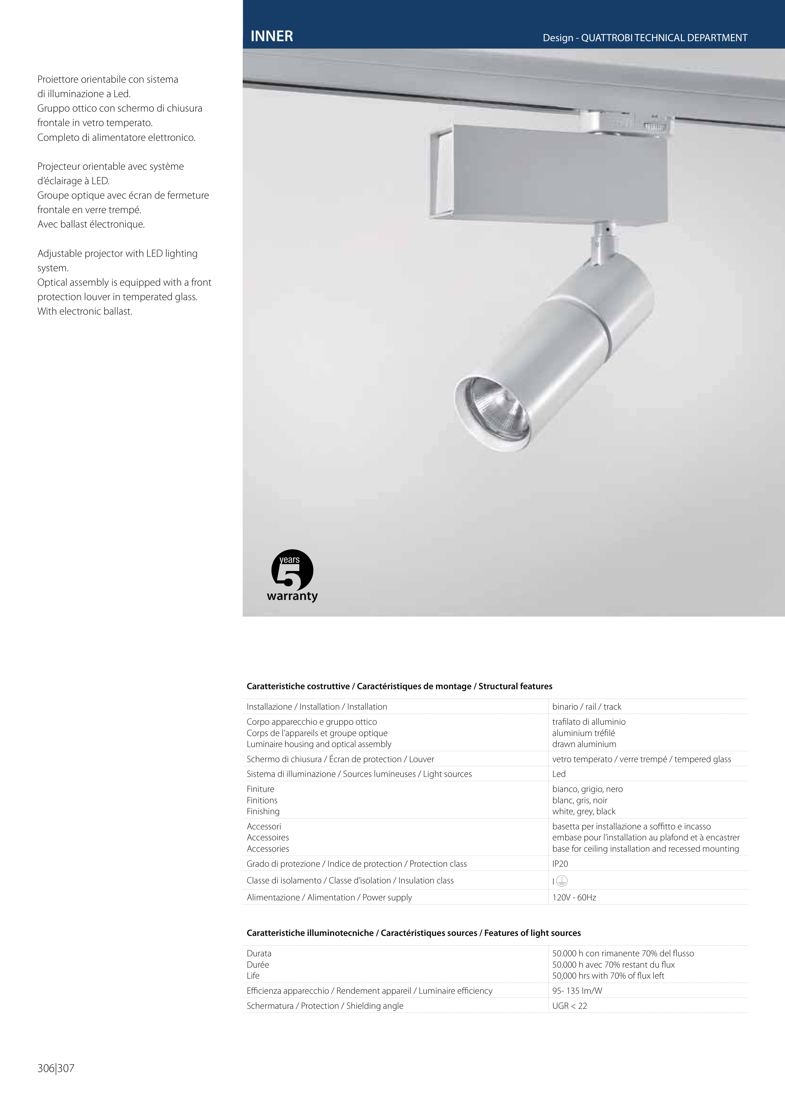 Caratteristiche illuminotecniche / Caractéristiques sources / Features of light sources