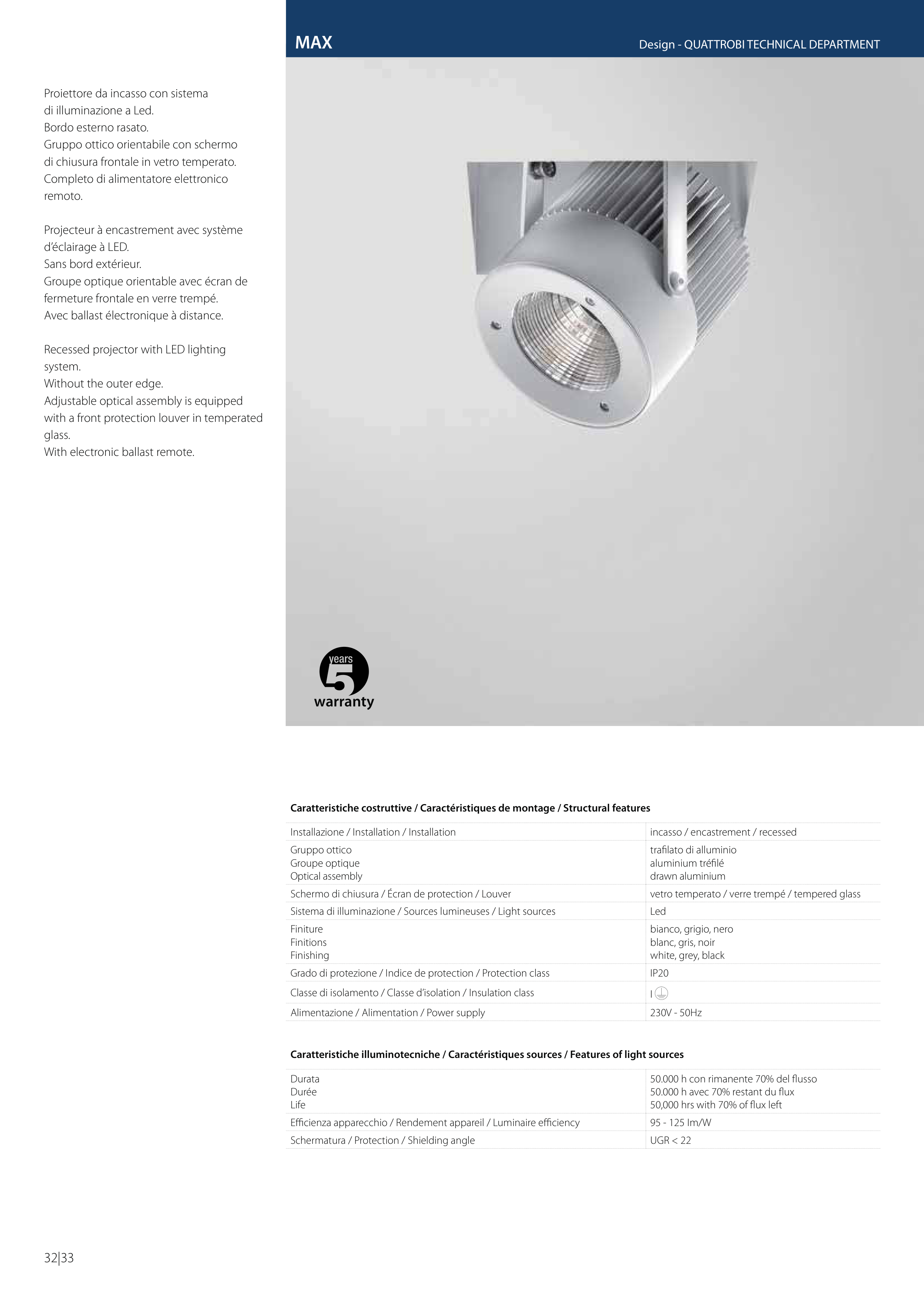 Caratteristiche illuminotecniche / Caractéristiques sources / Features of light sources