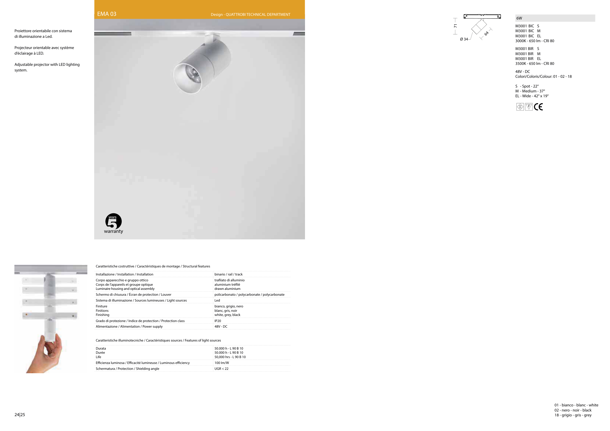 Caratteristiche illuminotecniche / Caractéristiques sources / Features of light sources