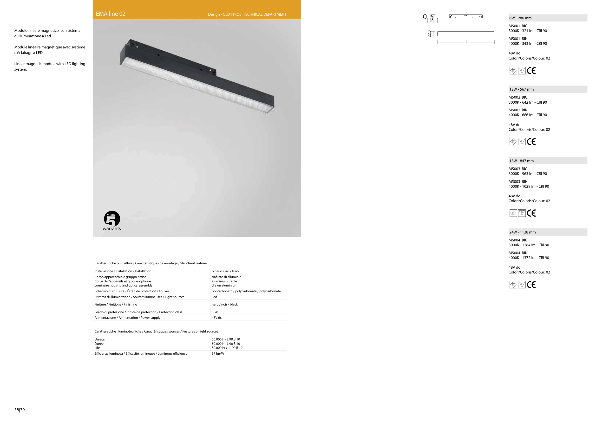 Caratteristiche illuminotecniche / Caractéristiques sources / Features of light sources
