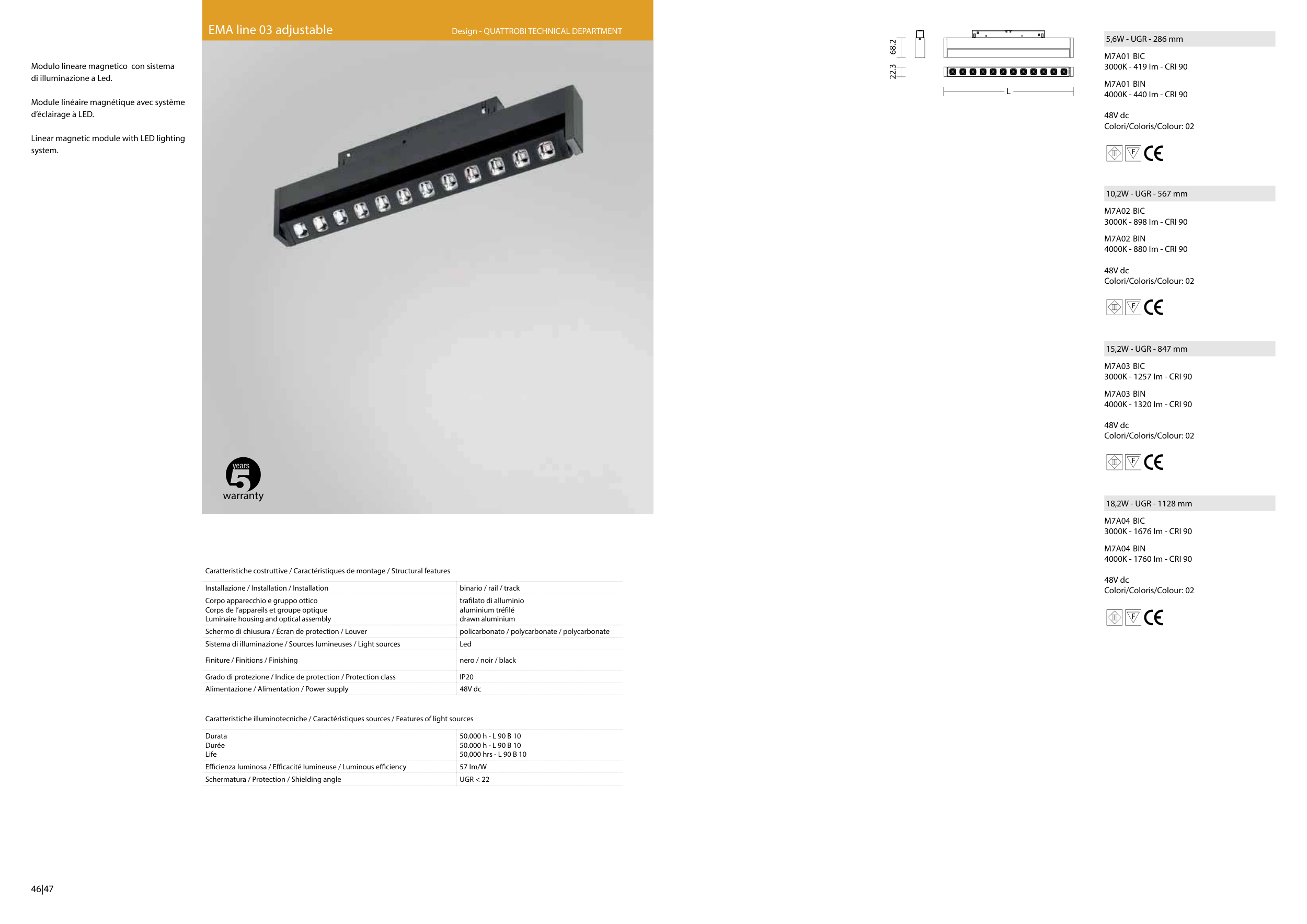 Caratteristiche illuminotecniche / Caractéristiques sources / Features of light sources