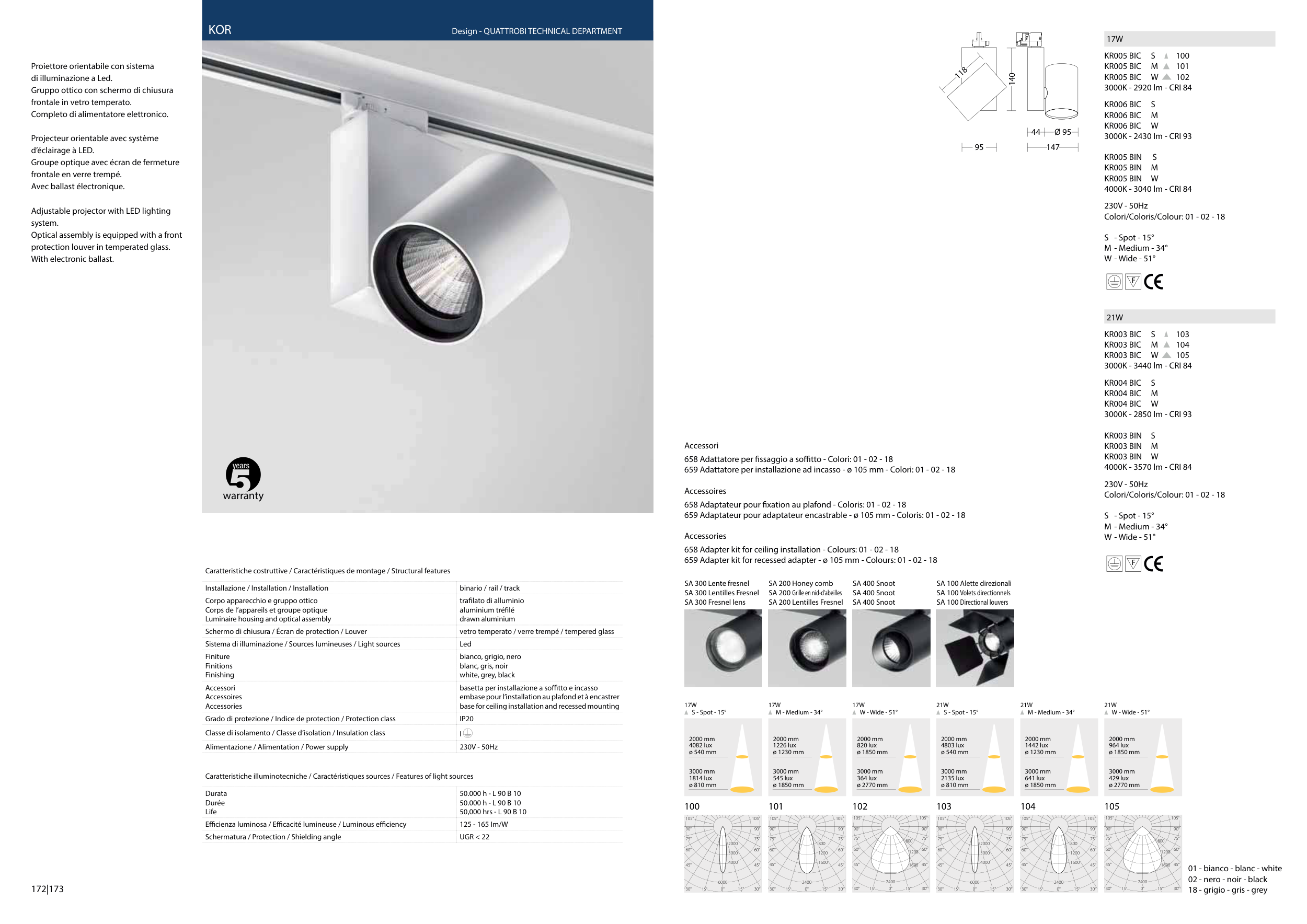 Caratteristiche illuminotecniche / Caractéristiques sources / Features of light sources